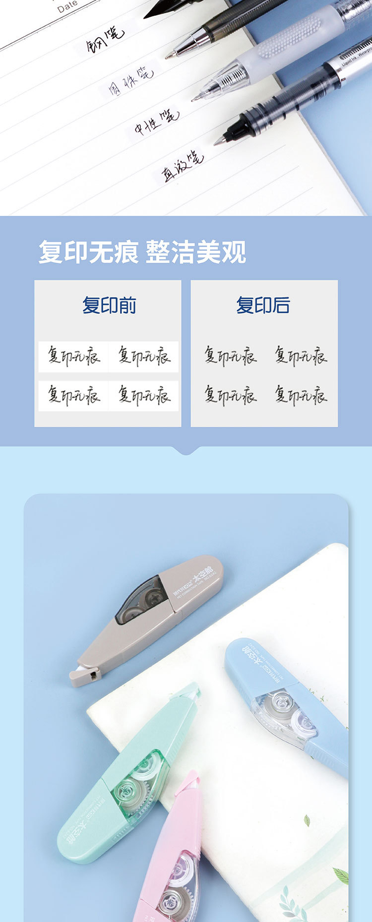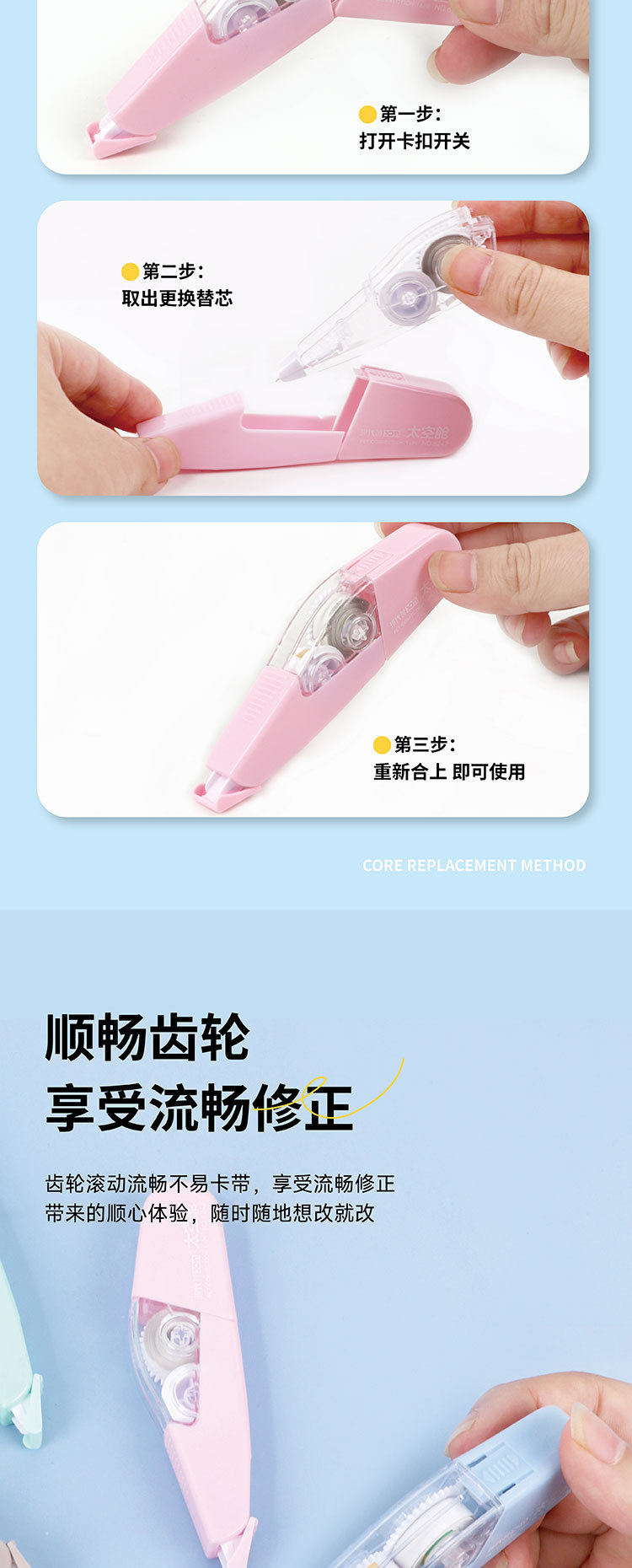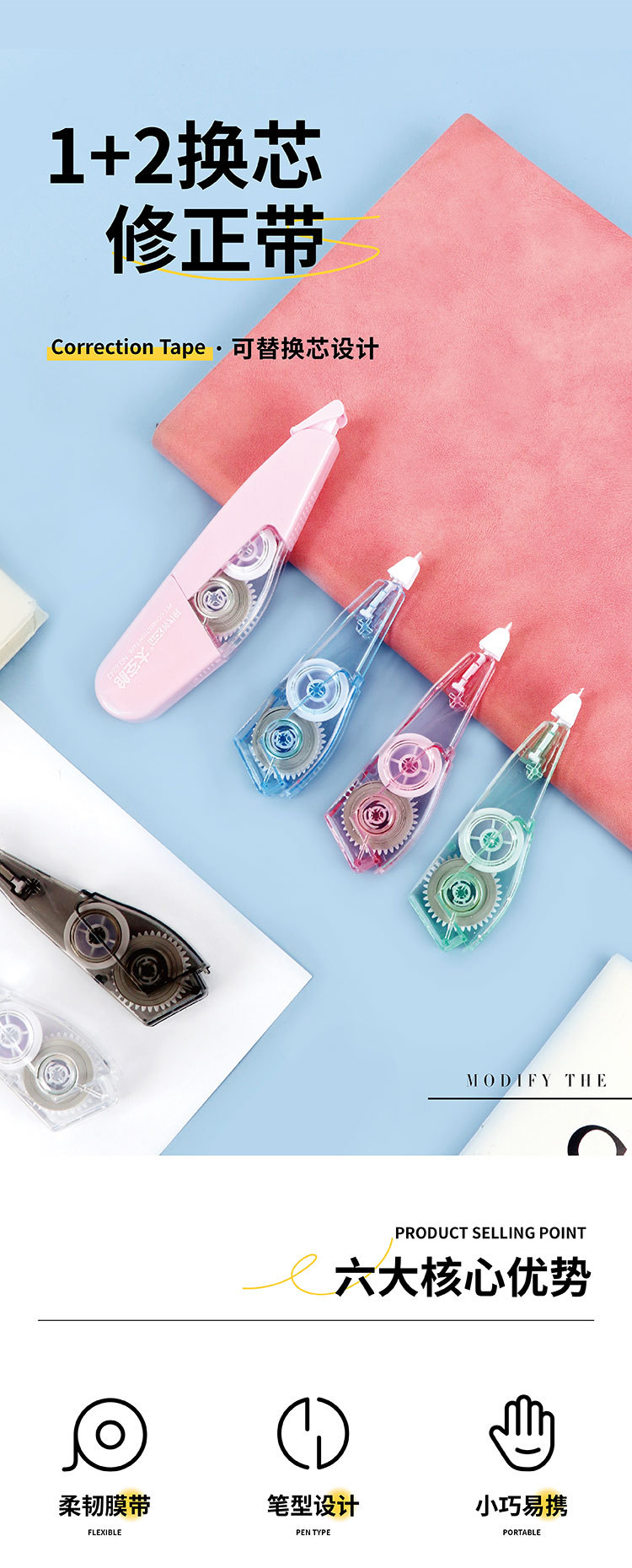 现代美6242大容量卡通修正带莫兰迪色涂改带学生可换芯静音改正带