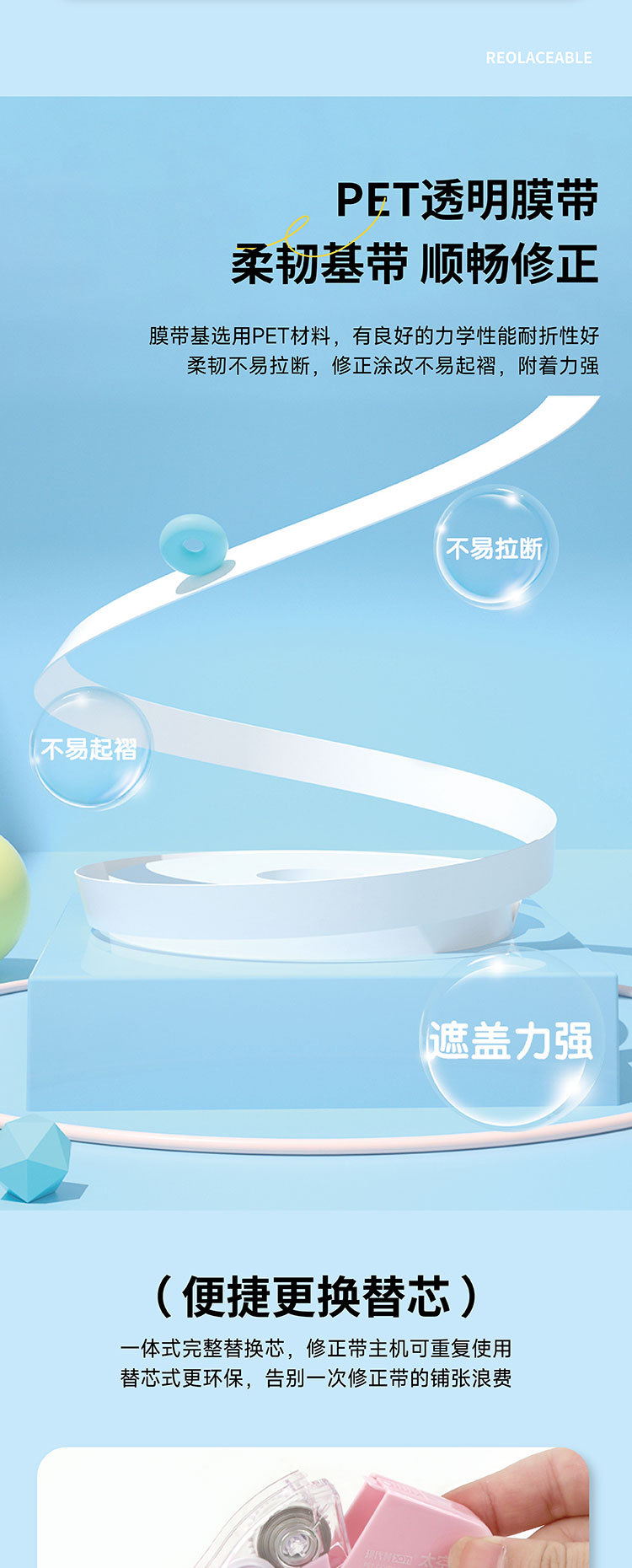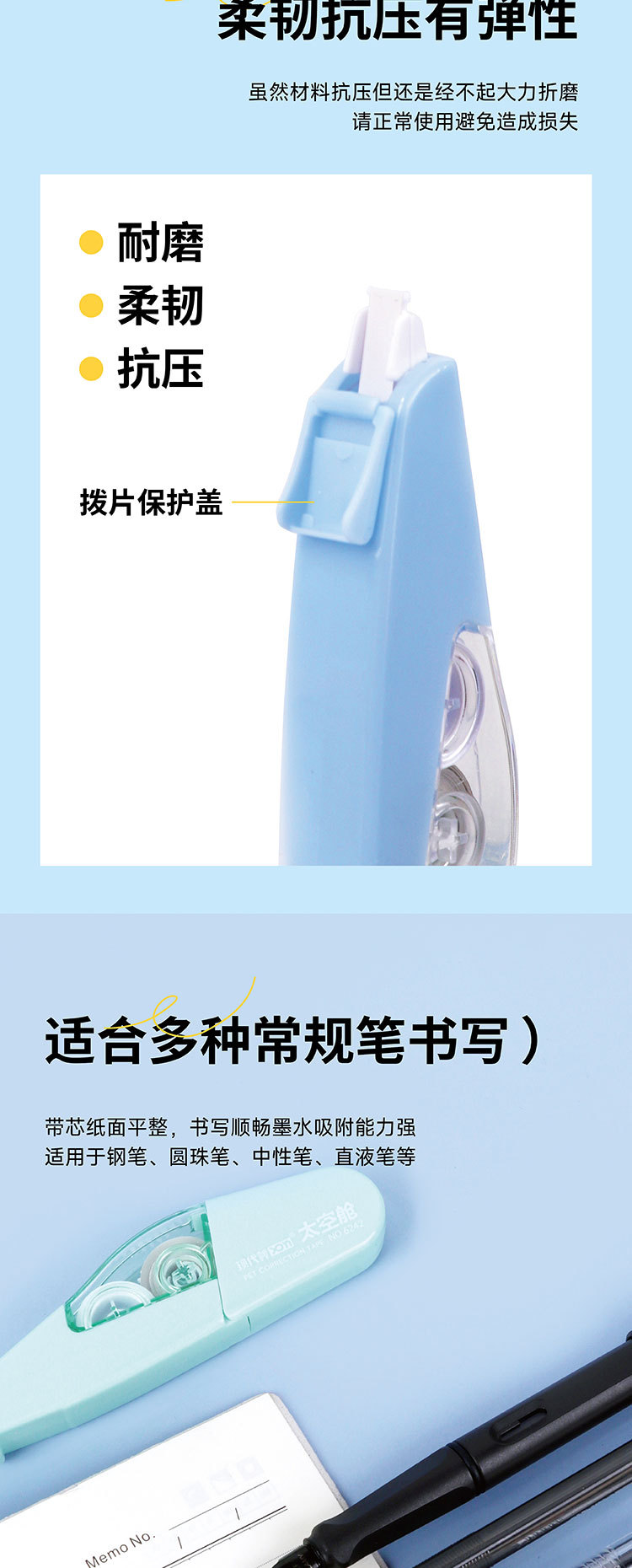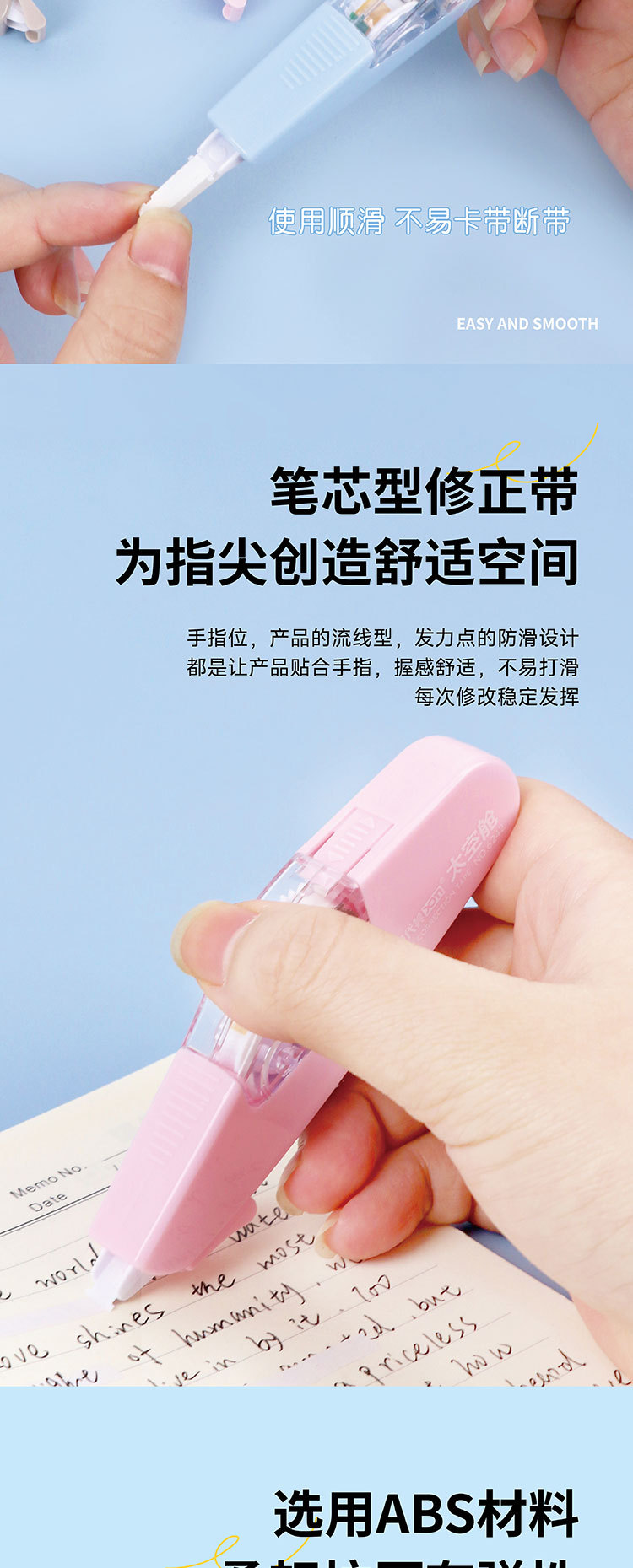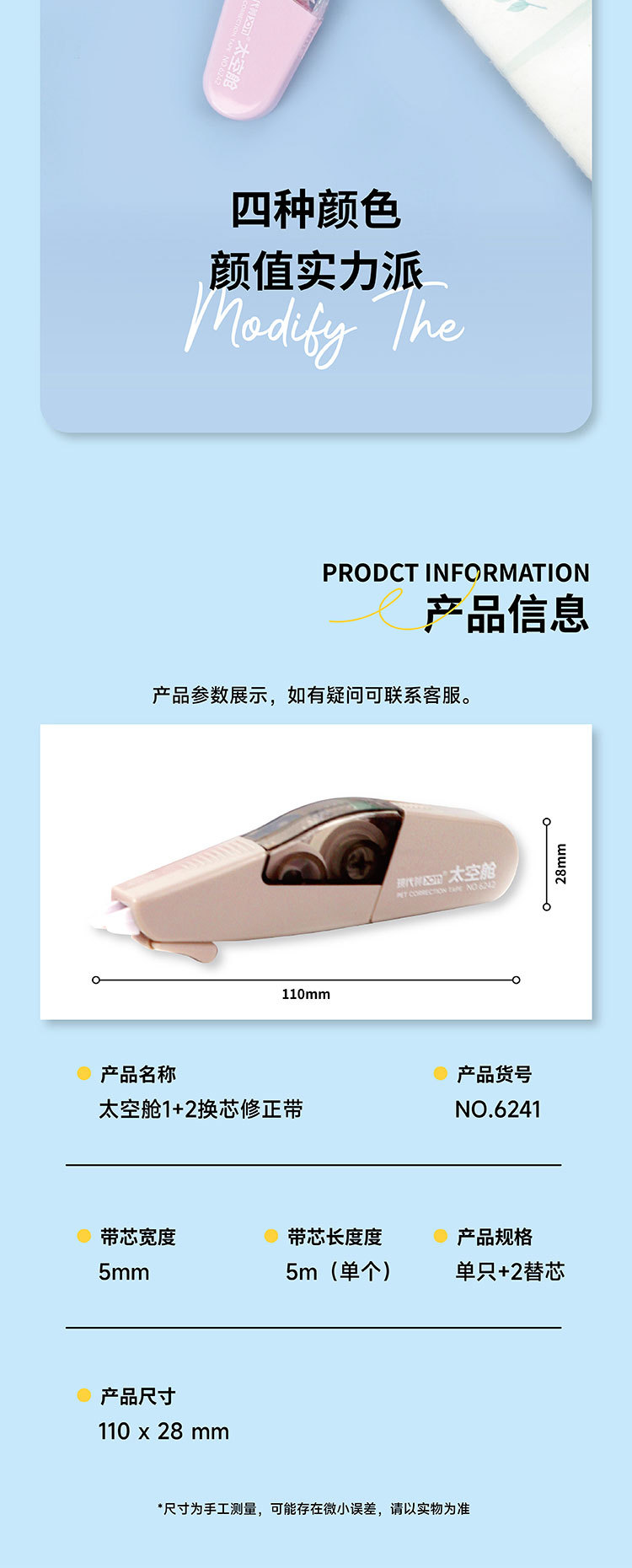 现代美6242大容量卡通修正带莫兰迪色涂改带学生可换芯静音改正带