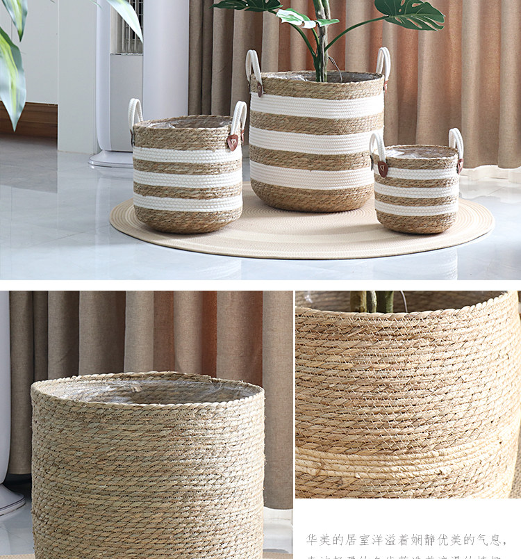 藤编草编花盆简约编织花篮绿植装饰大号套盆客厅阳台落地花器北欧