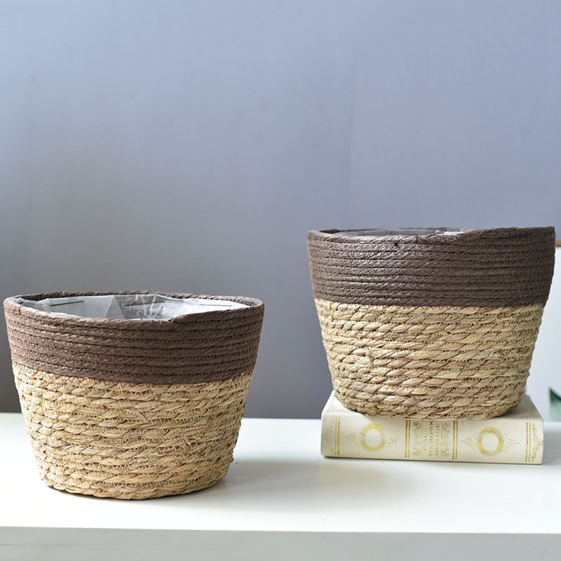 草编花盆圆形倒椎竹编花篮植物盆栽花盆置物亚马逊装饰
