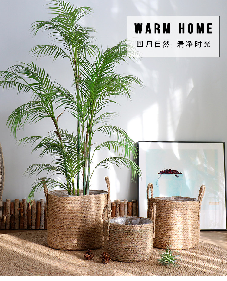 北欧藤编草编花盆植物绿植落地大套盆编织花篮高档轻奢家居装饰篮