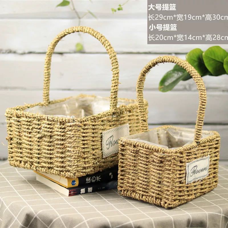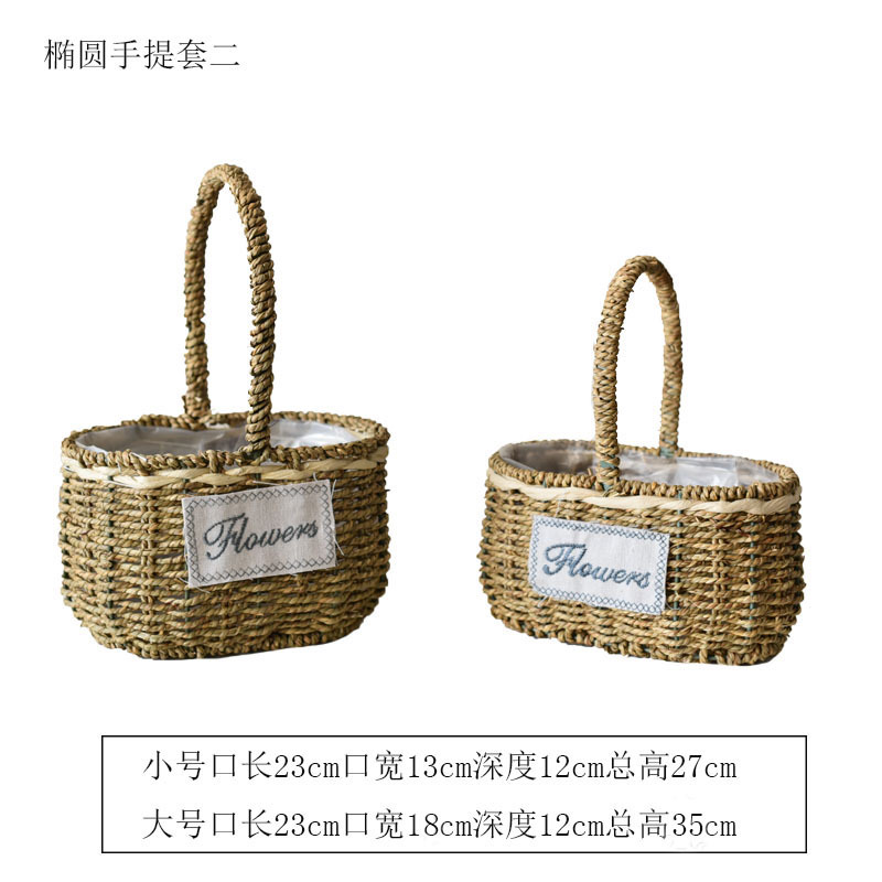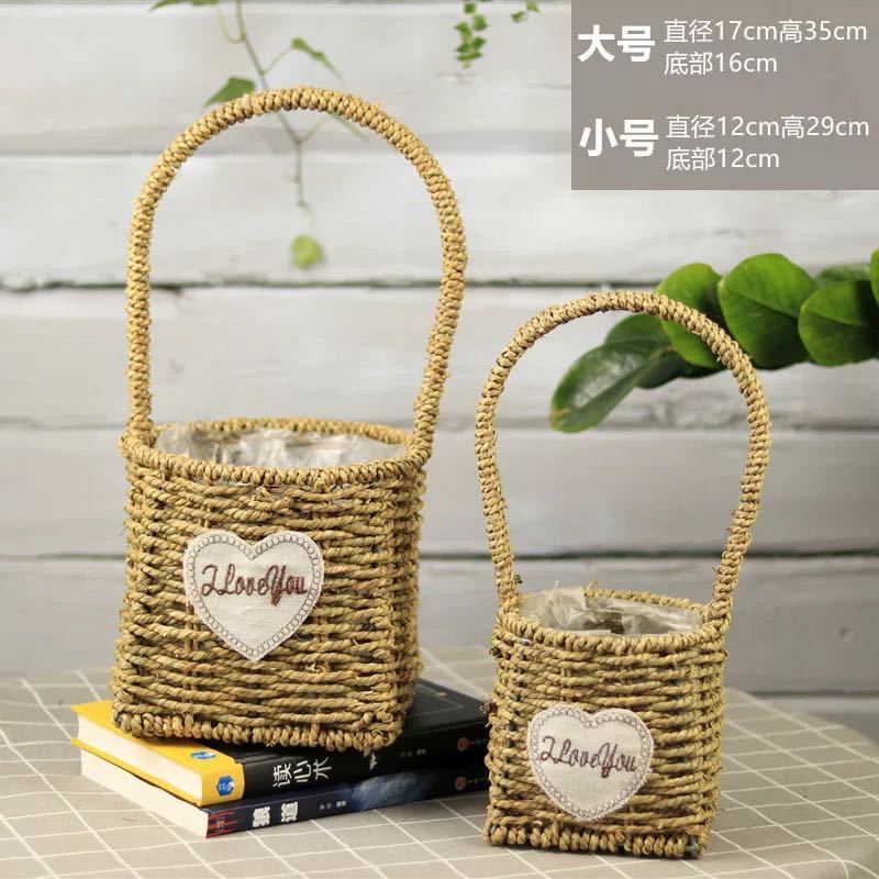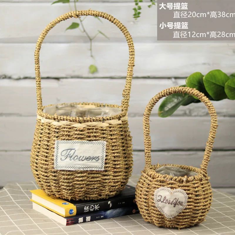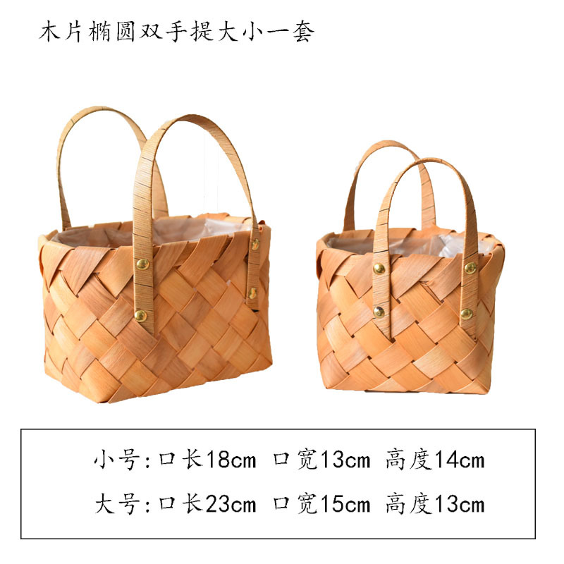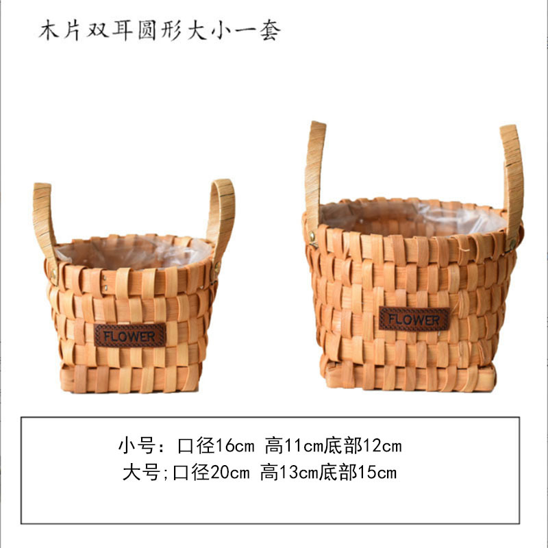 草编花篮子编织手提木片花艺装饰篮多肉北欧花盆藤编花盆