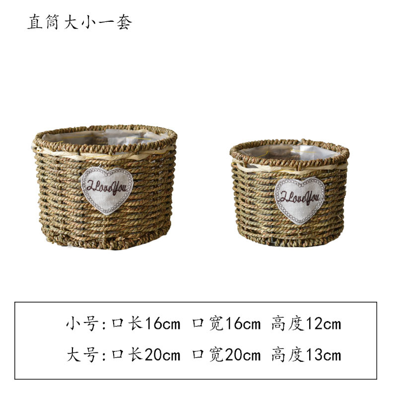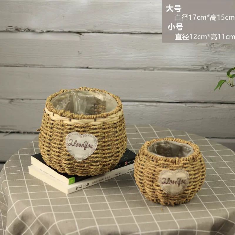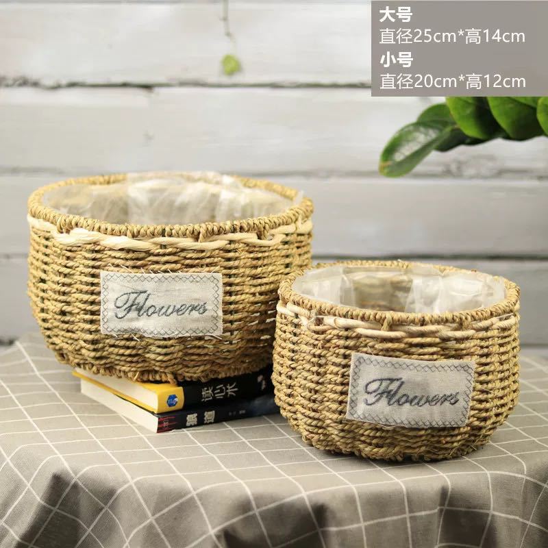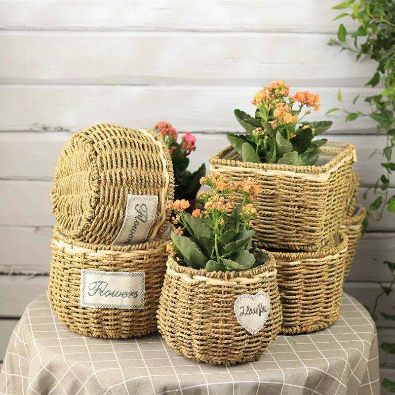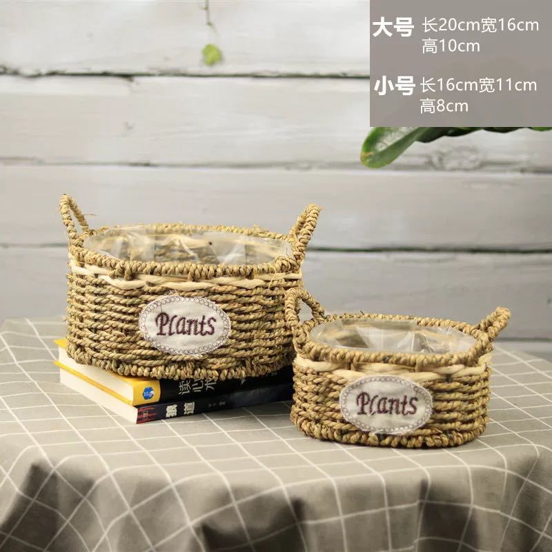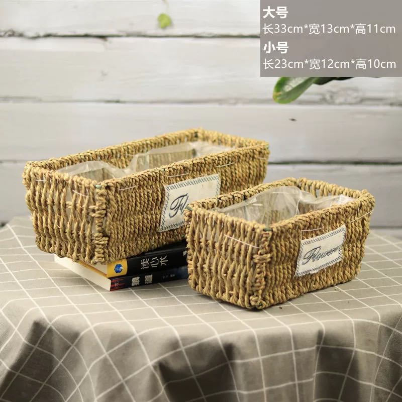 草编花篮子编织手提木片花艺装饰篮多肉北欧花盆藤编花盆