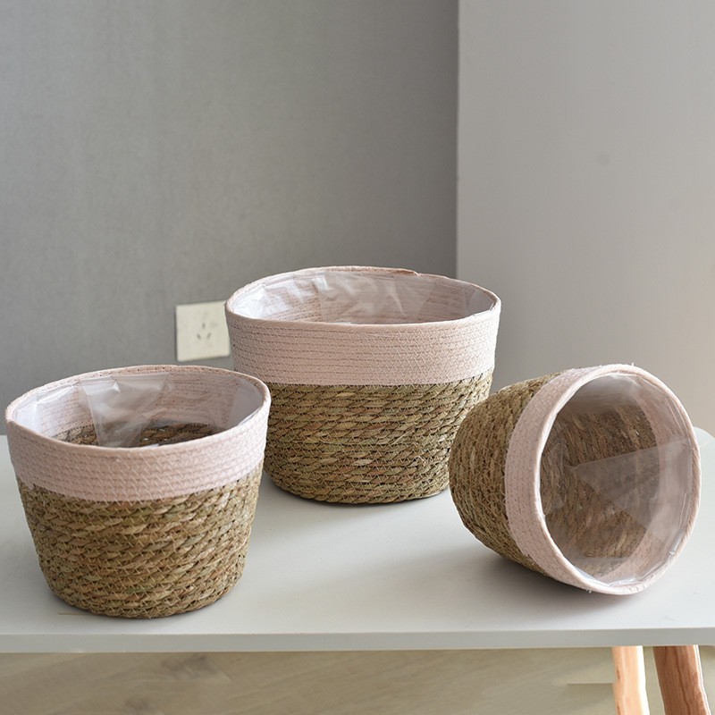 美式植物草绳编织花盆桌面盆栽土培藤编柳编篮子收纳筐纯手工