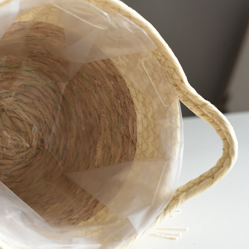 晴芊草编花盆藤编编织插花海草手工圆形植物篮子筐子盆栽植物花篮