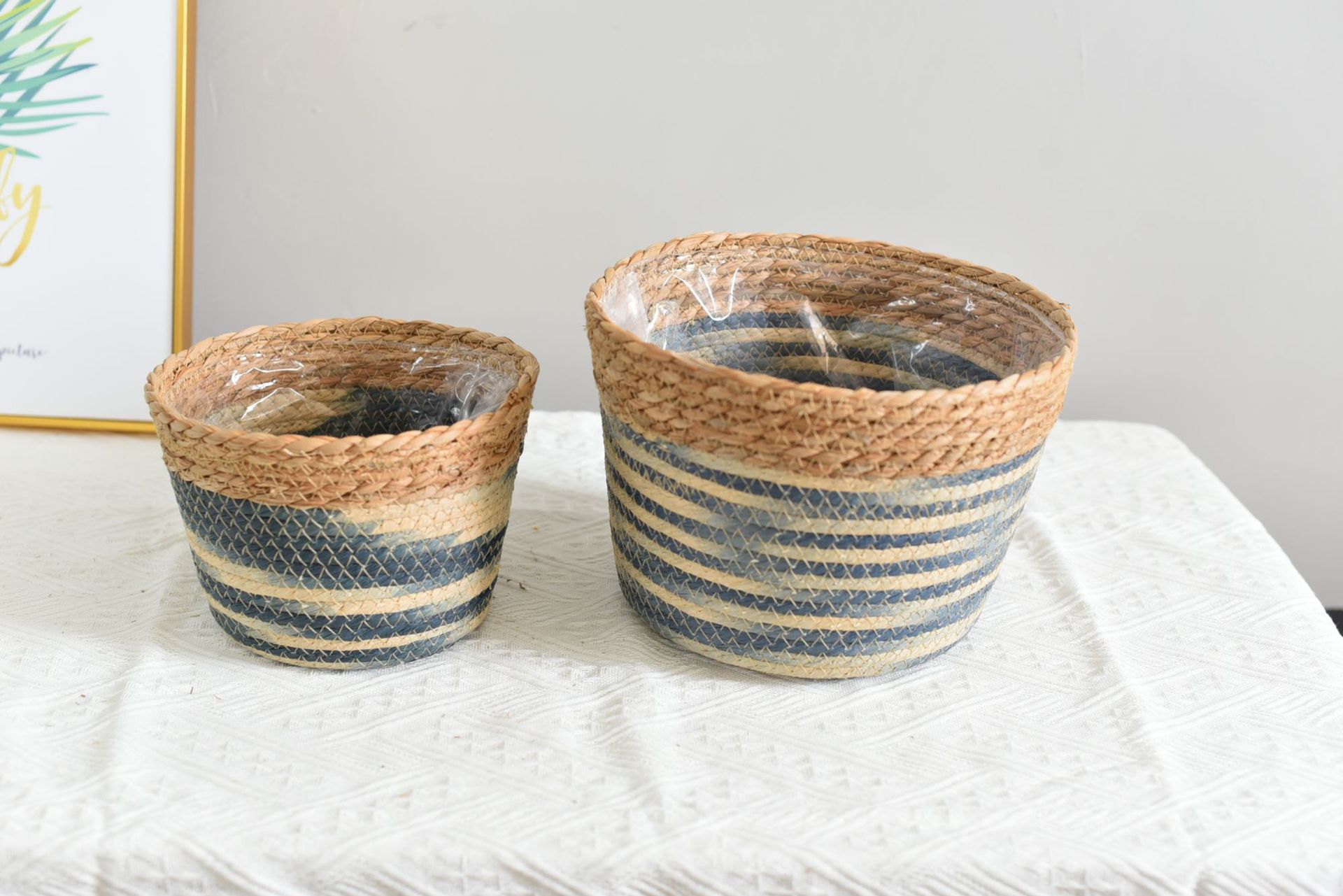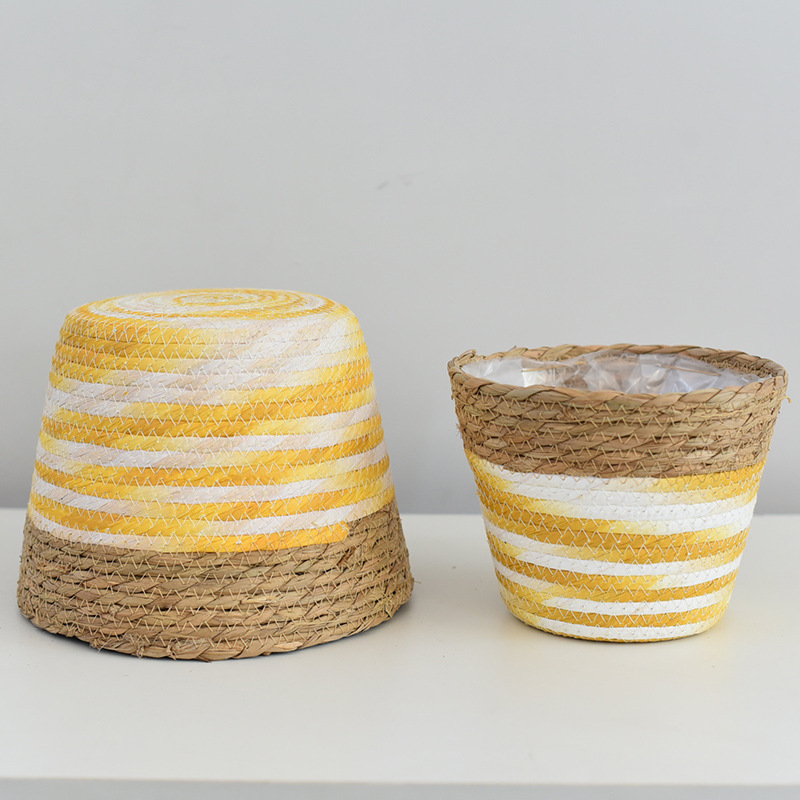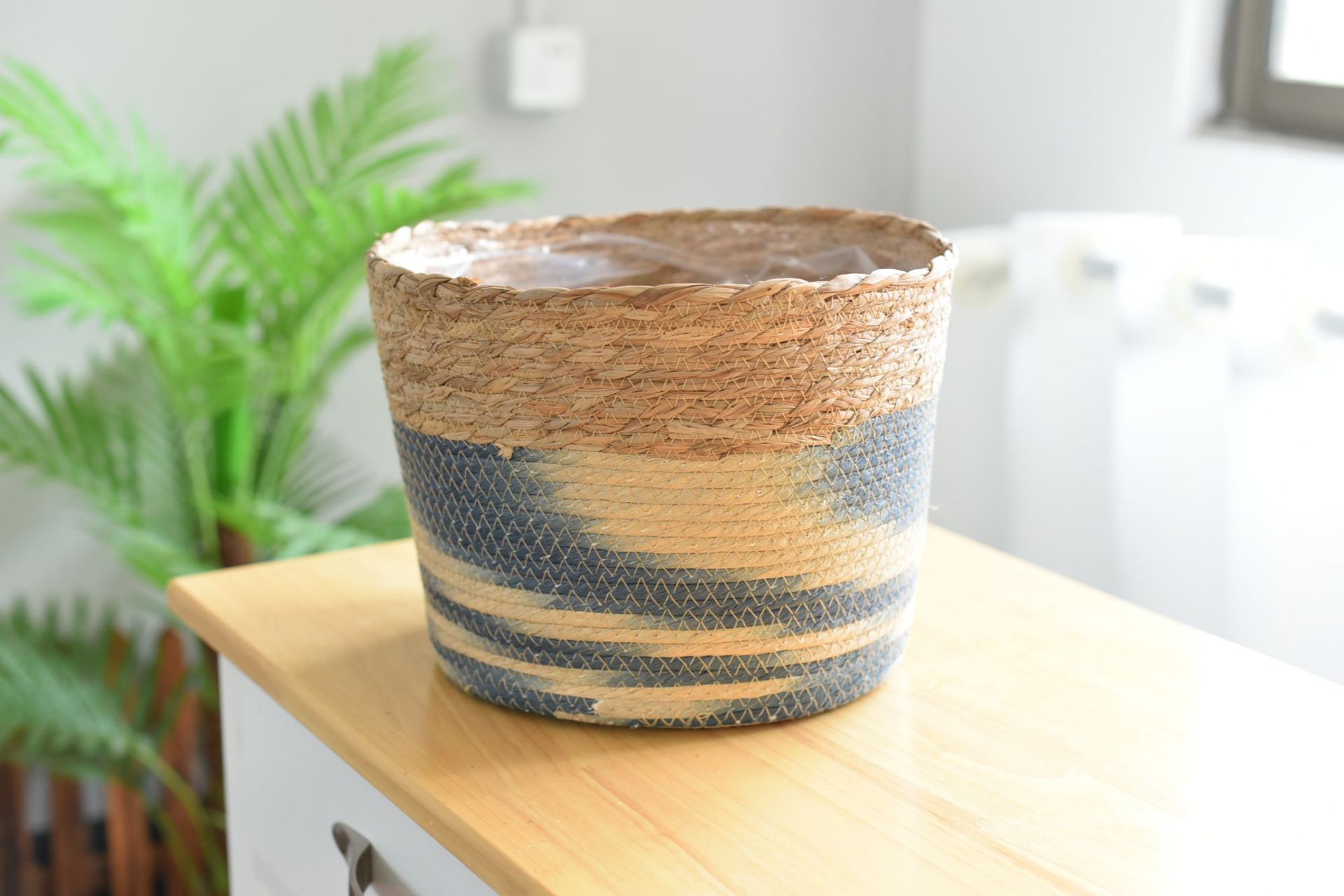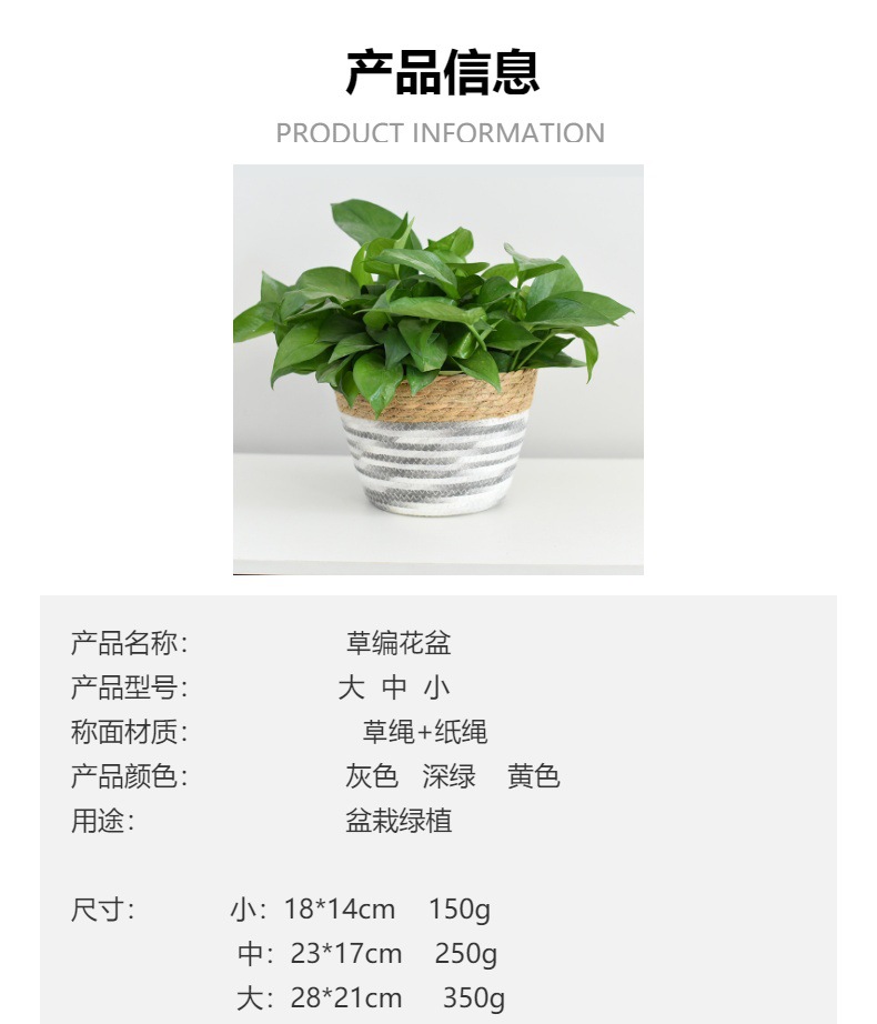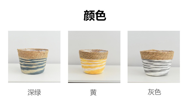 花篮编织篮草编手工倒锥形花盆套纸绳创意家居装饰室内盆栽蒲草
