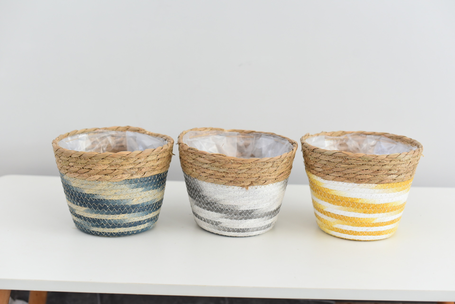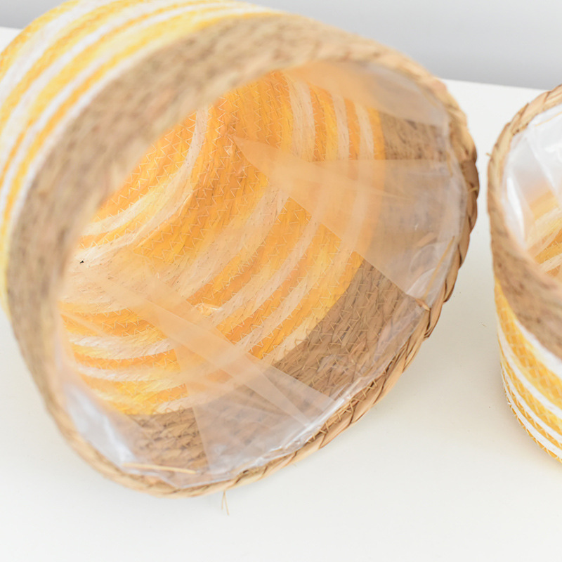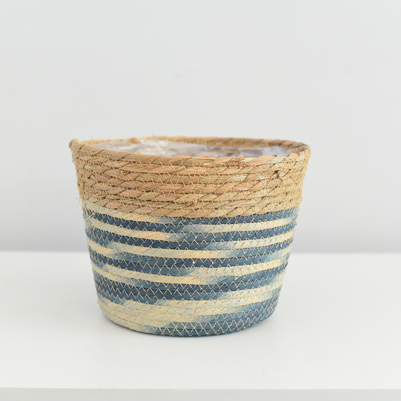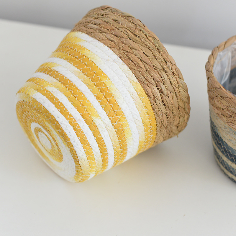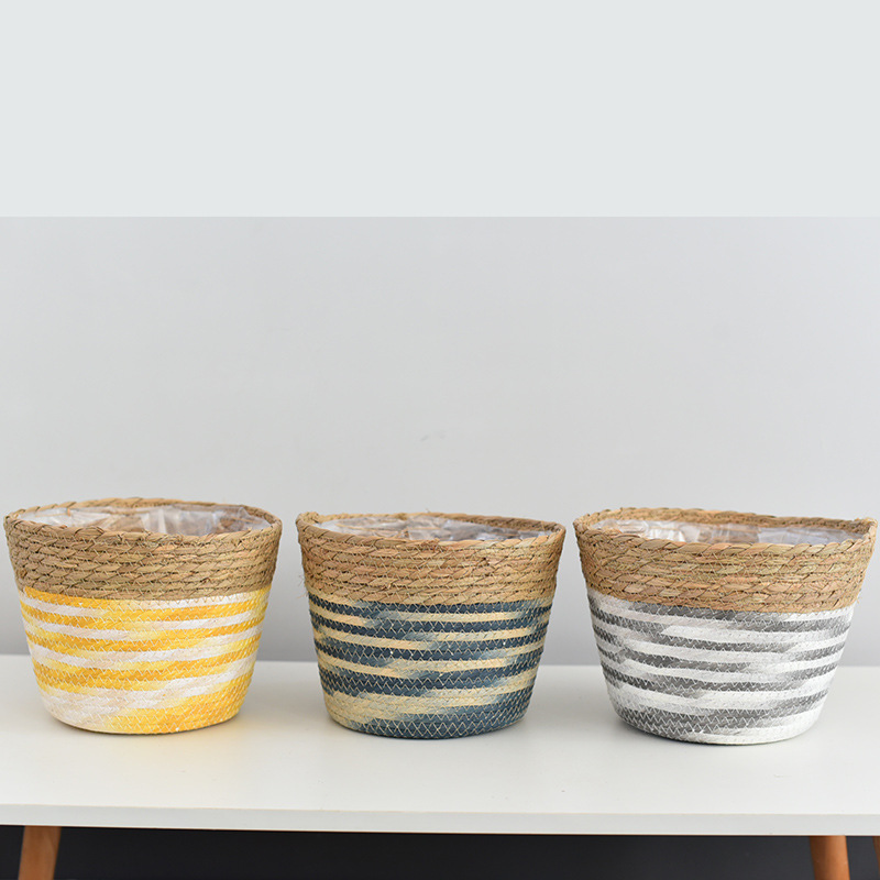 花篮编织篮草编手工倒锥形花盆套纸绳创意家居装饰室内盆栽蒲草