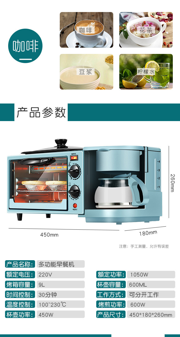 早餐机三合一多士炉三明治机电烤箱烤面包机厂家批发引流活动礼品