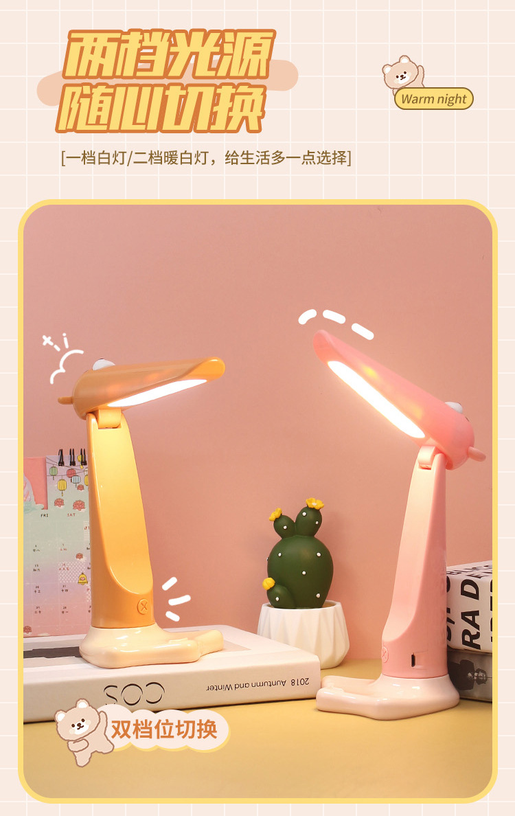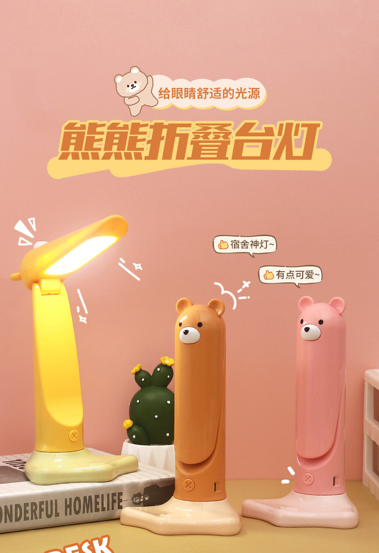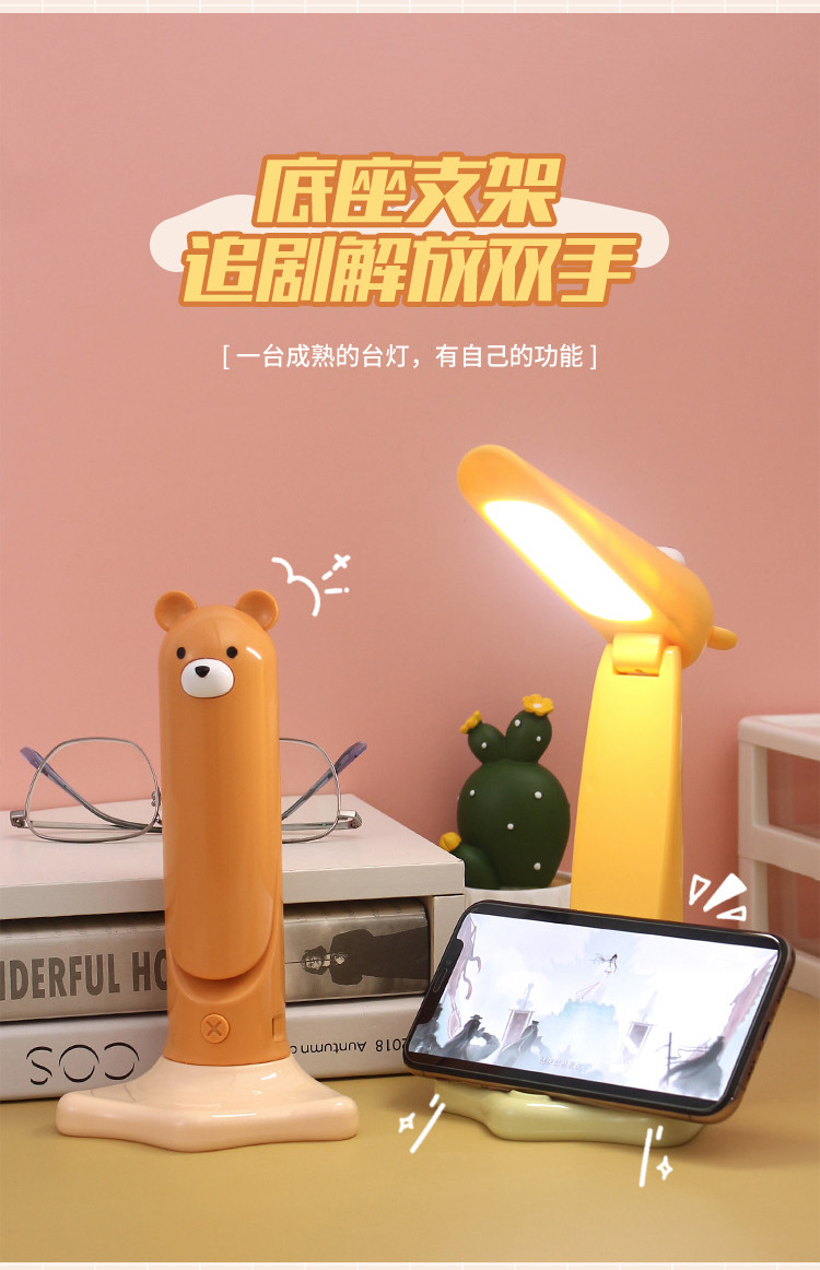 迷你萌熊折叠台灯 手机支架LED小夜灯 卡通台式折叠USB充电学习灯