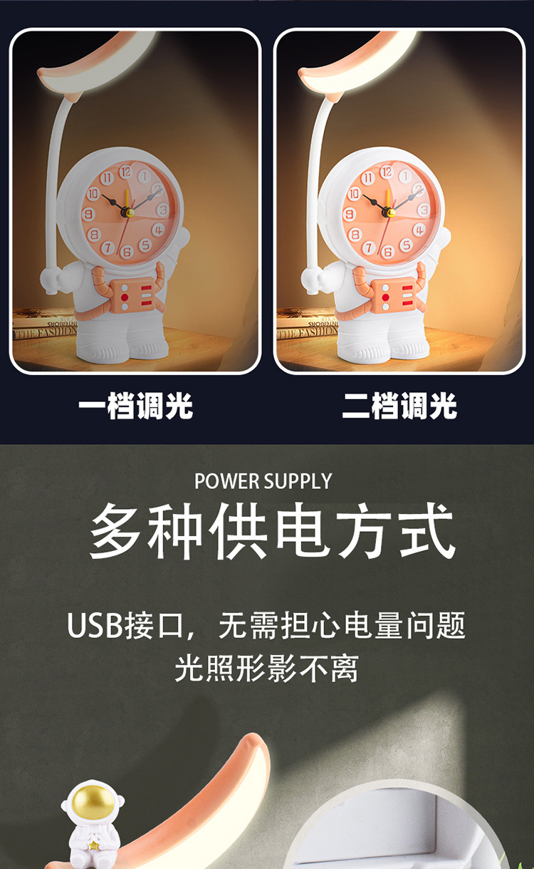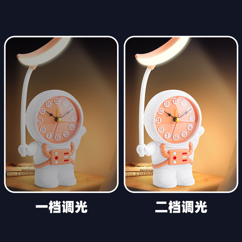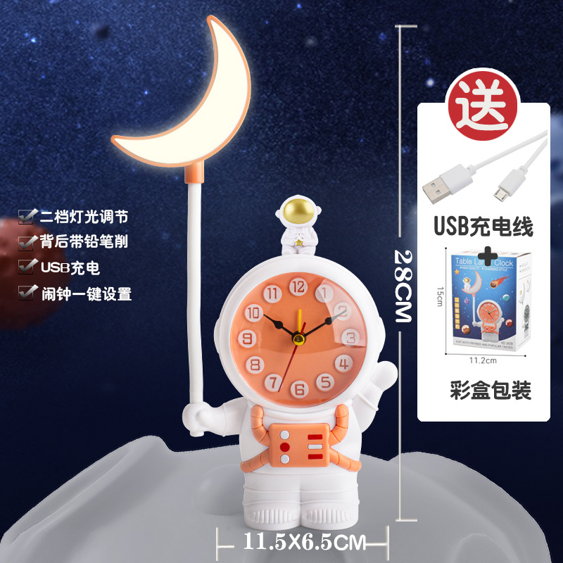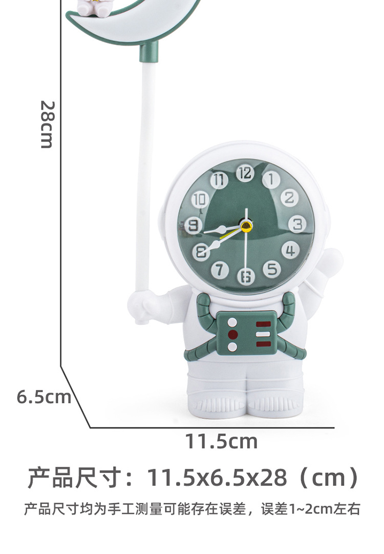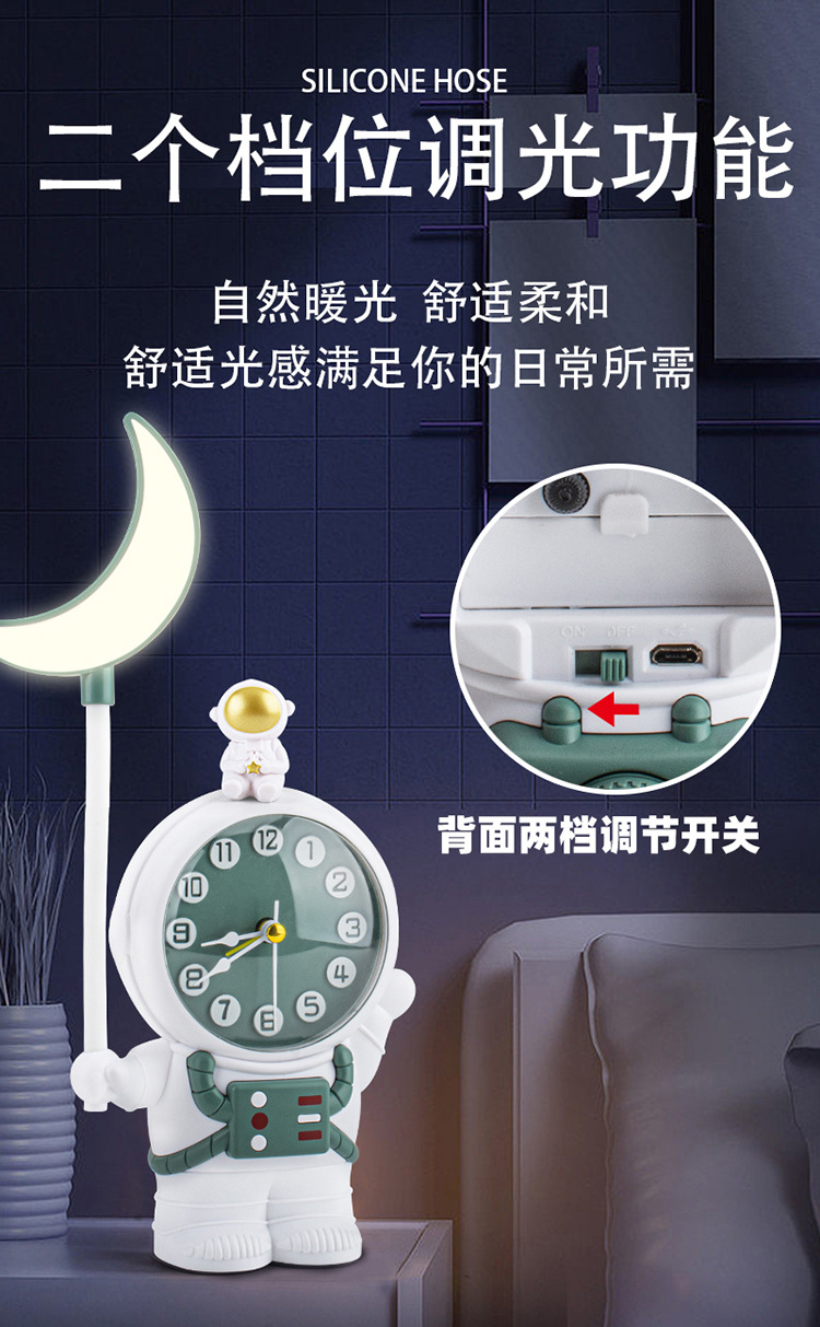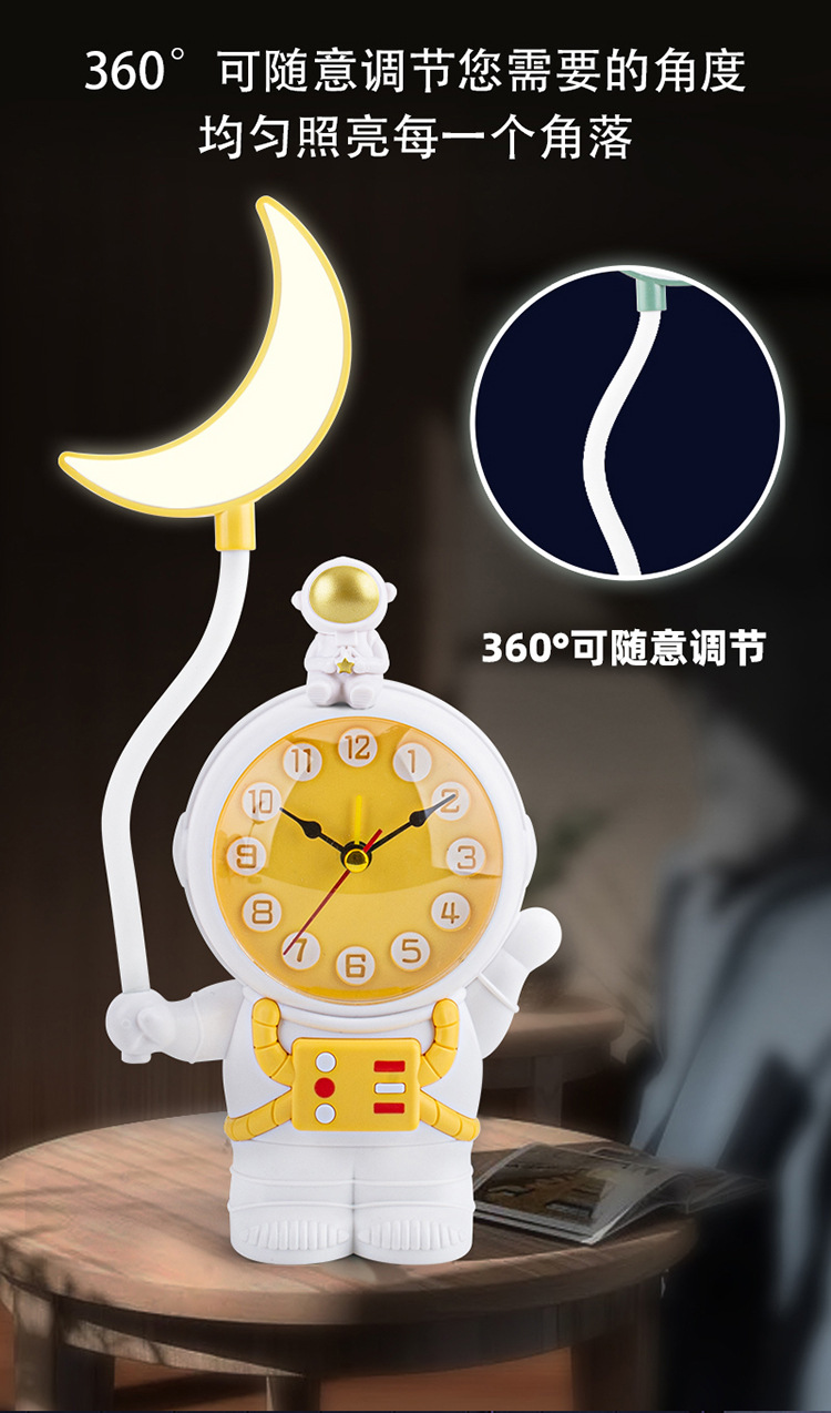 创意宇航员闹钟月亮台灯学生桌面摆件时钟床头小夜灯学生奖品台灯