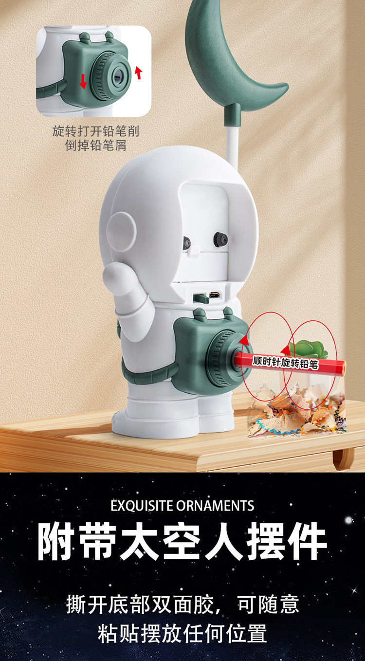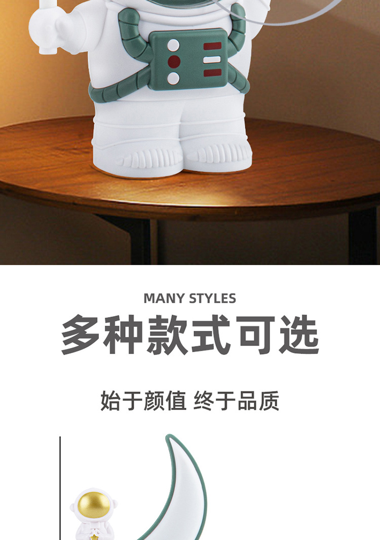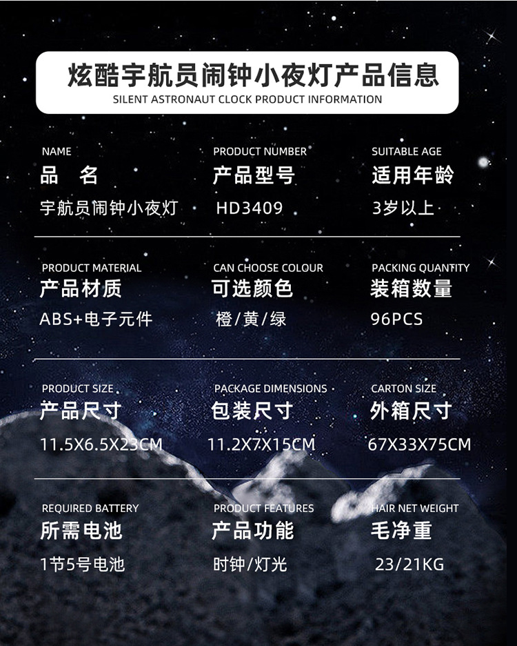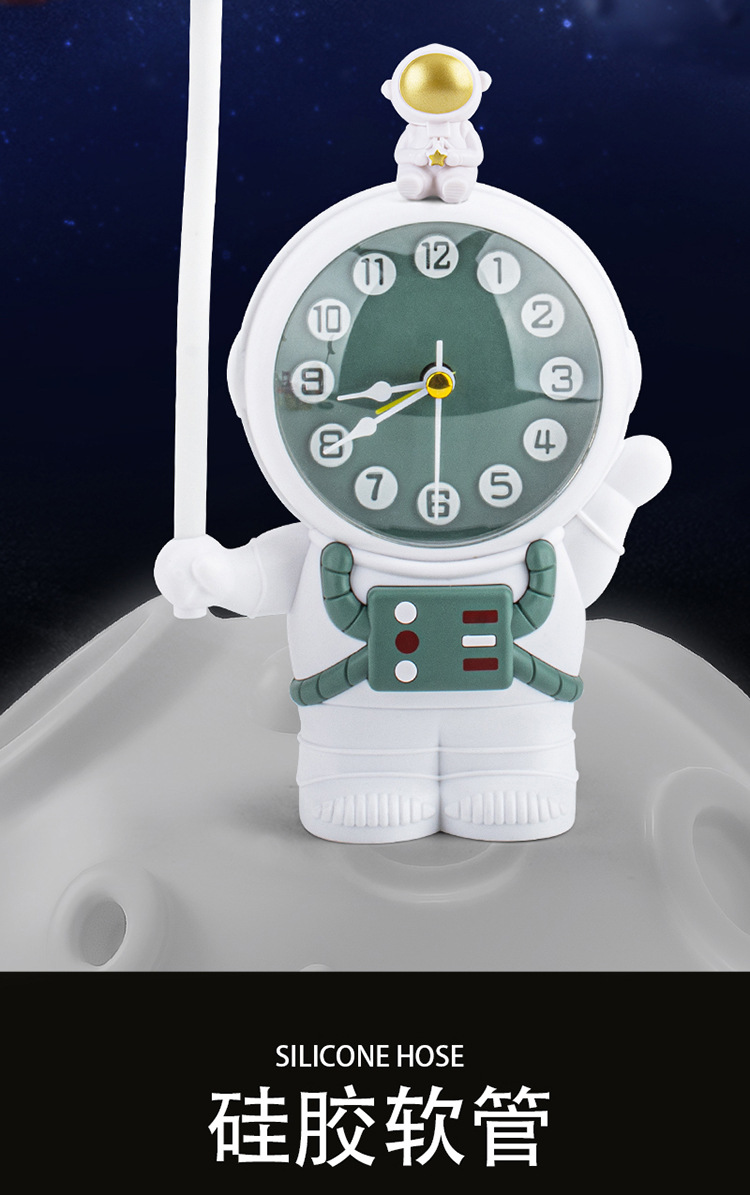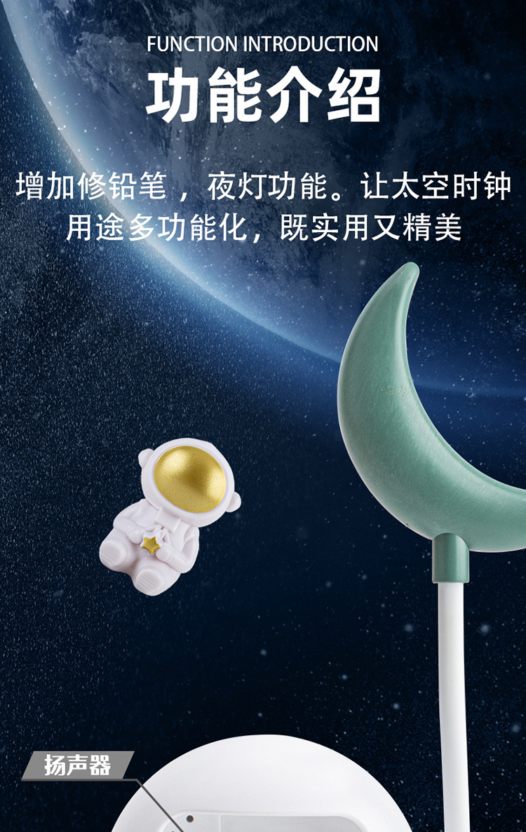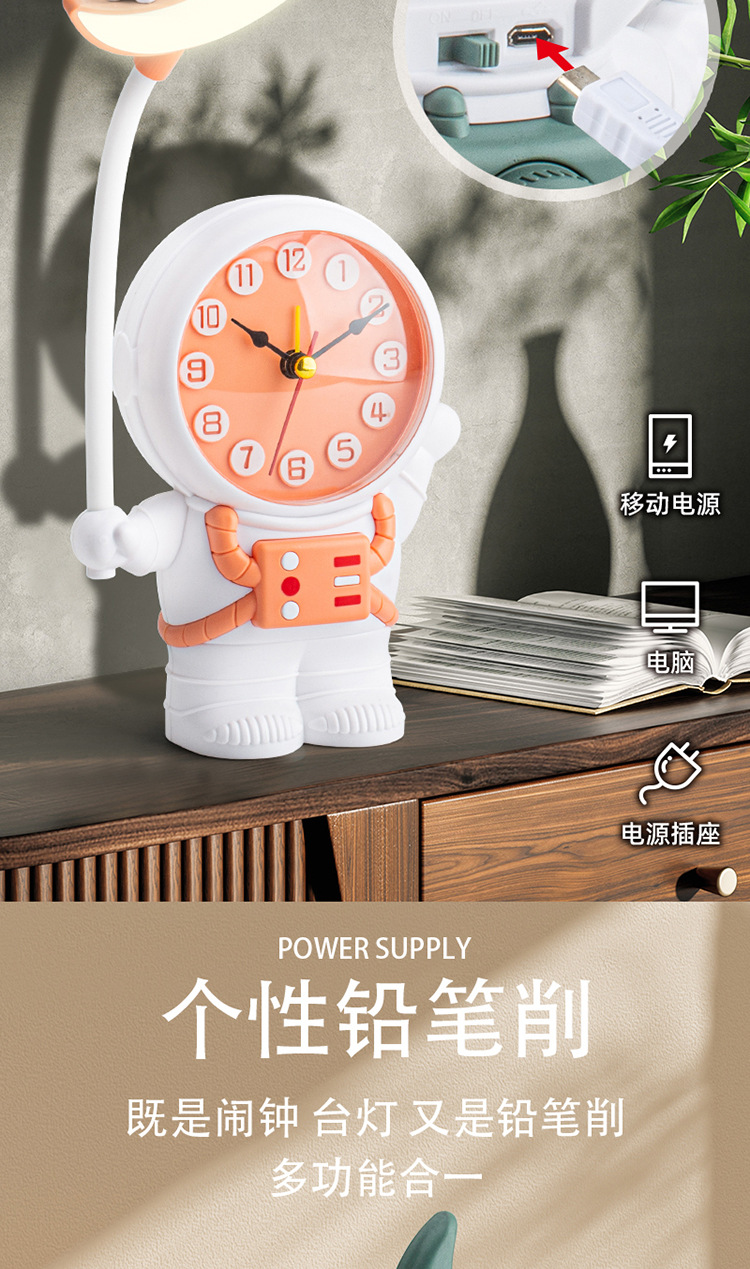 创意宇航员闹钟月亮台灯学生桌面摆件时钟床头小夜灯学生奖品台灯