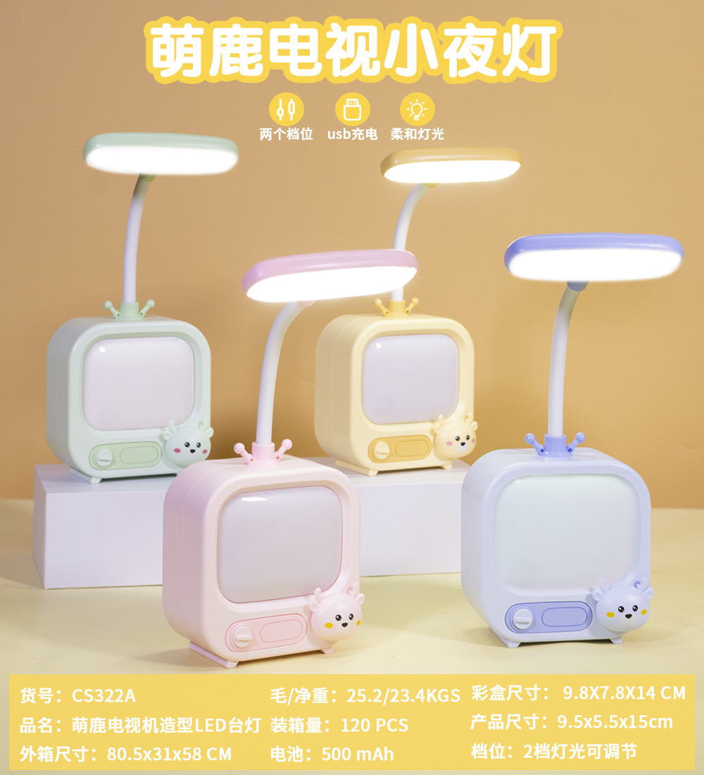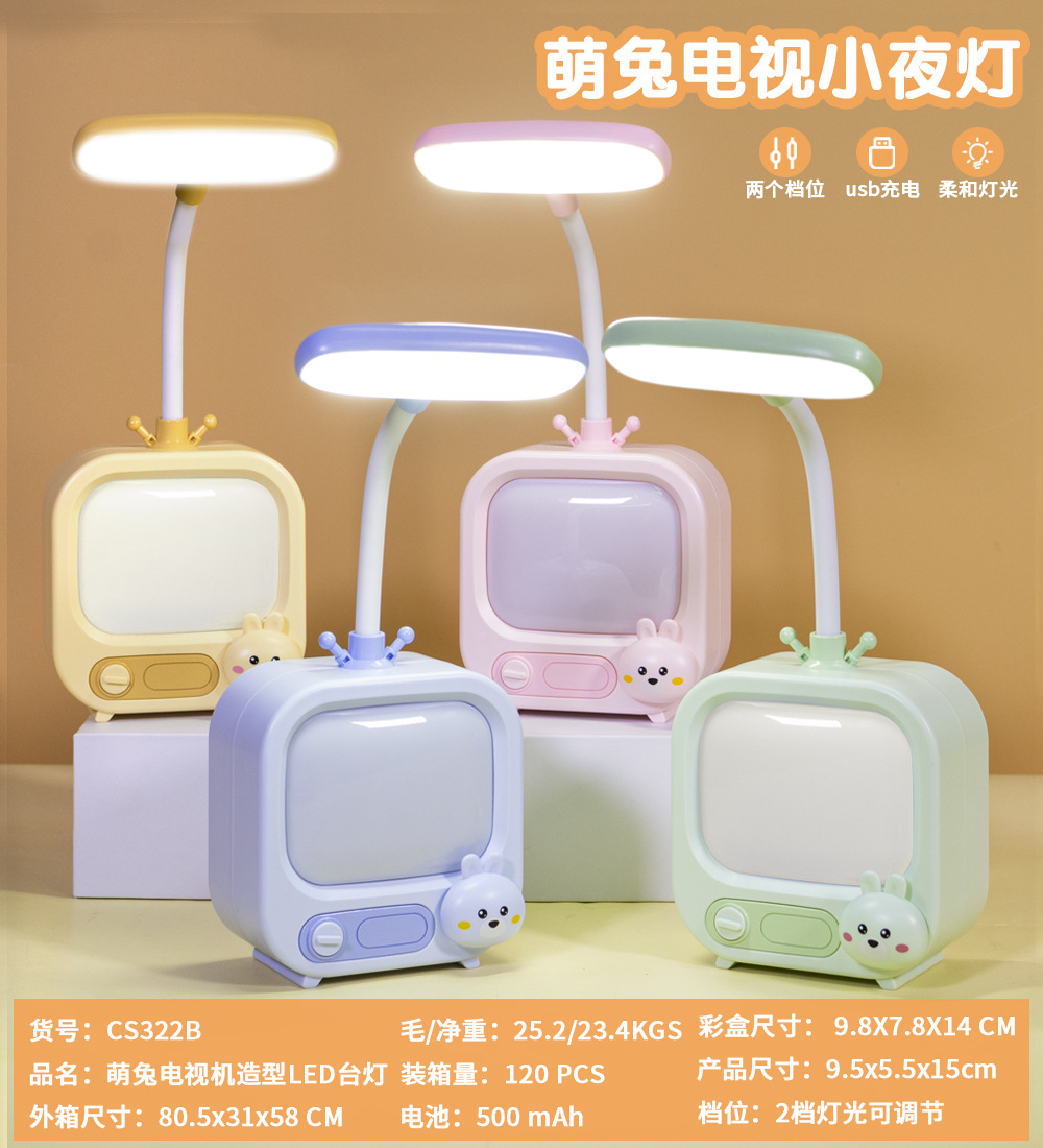 萌宠电视机LED护眼小夜灯usb充电款儿童桌面床头灯小礼品摆件台灯