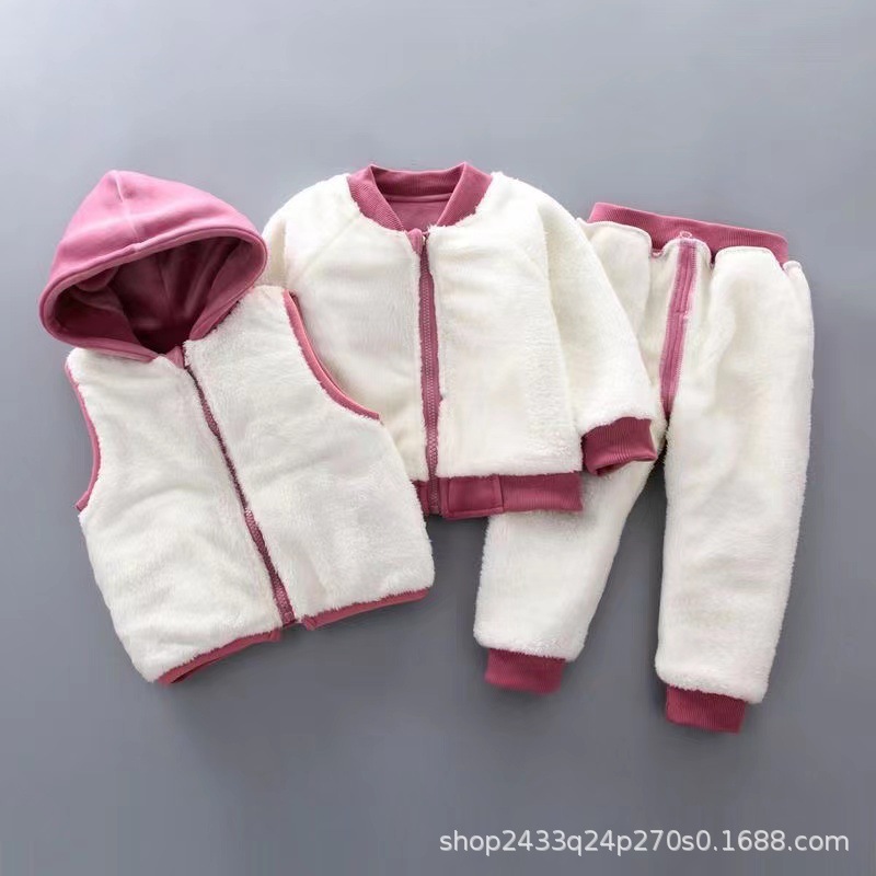 童装男童冬装加厚婴儿童棉衣套装三件套保暖套装女宝宝加绒加厚潮