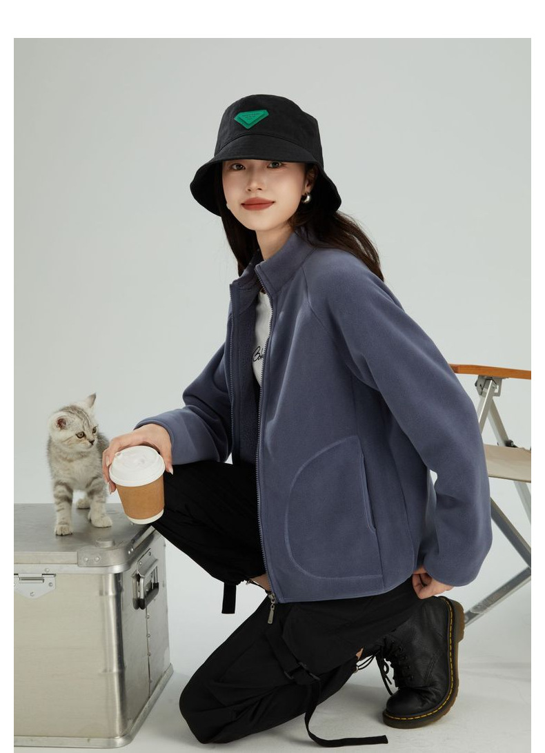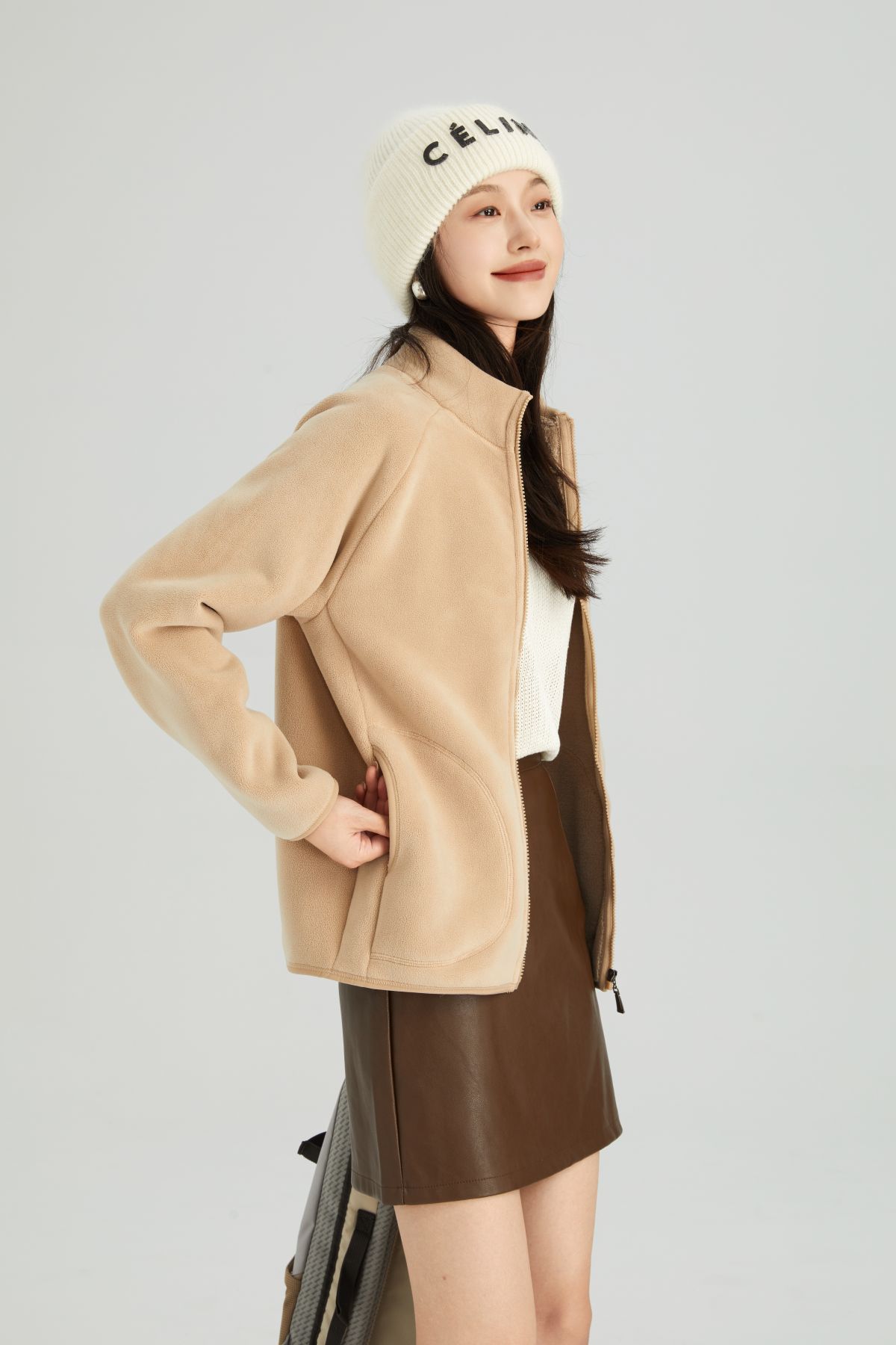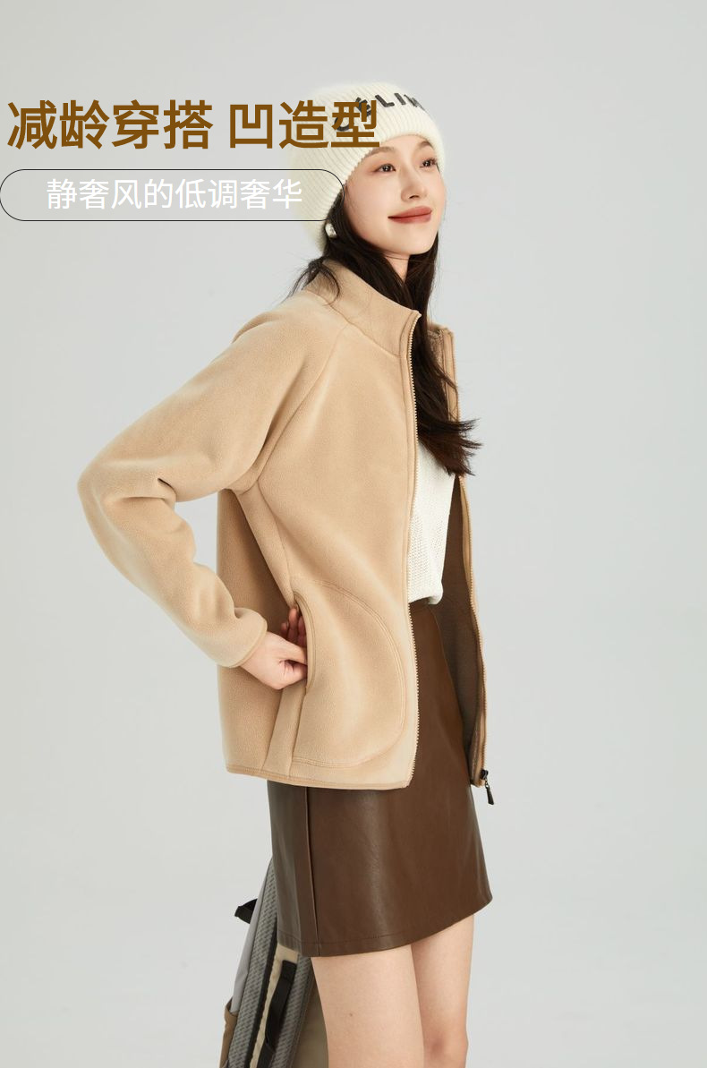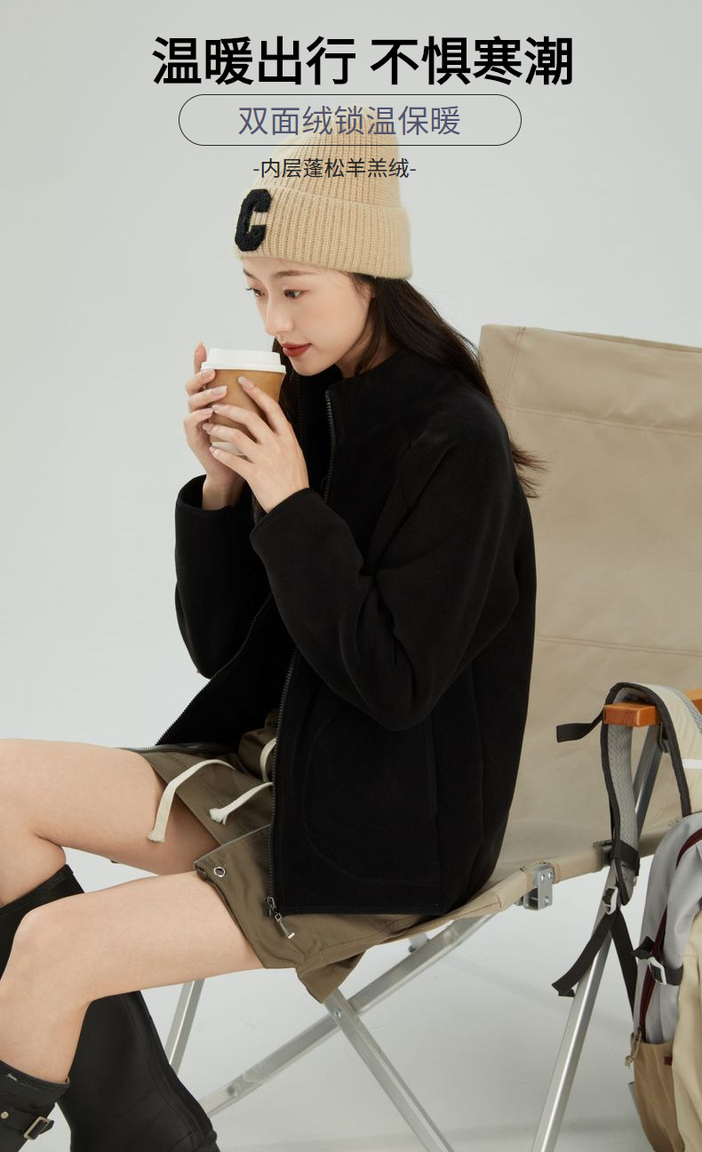 【双面绒立领外套】摇粒绒女秋冬加绒加厚羊羔绒立领开衫短款外套