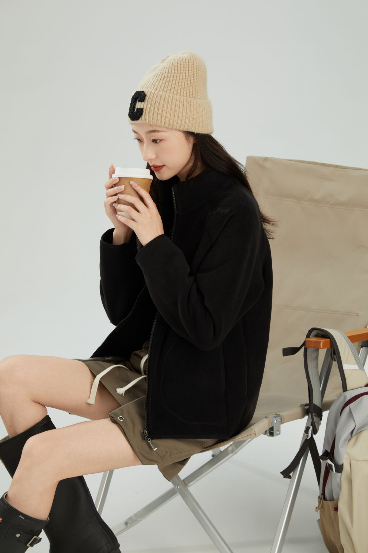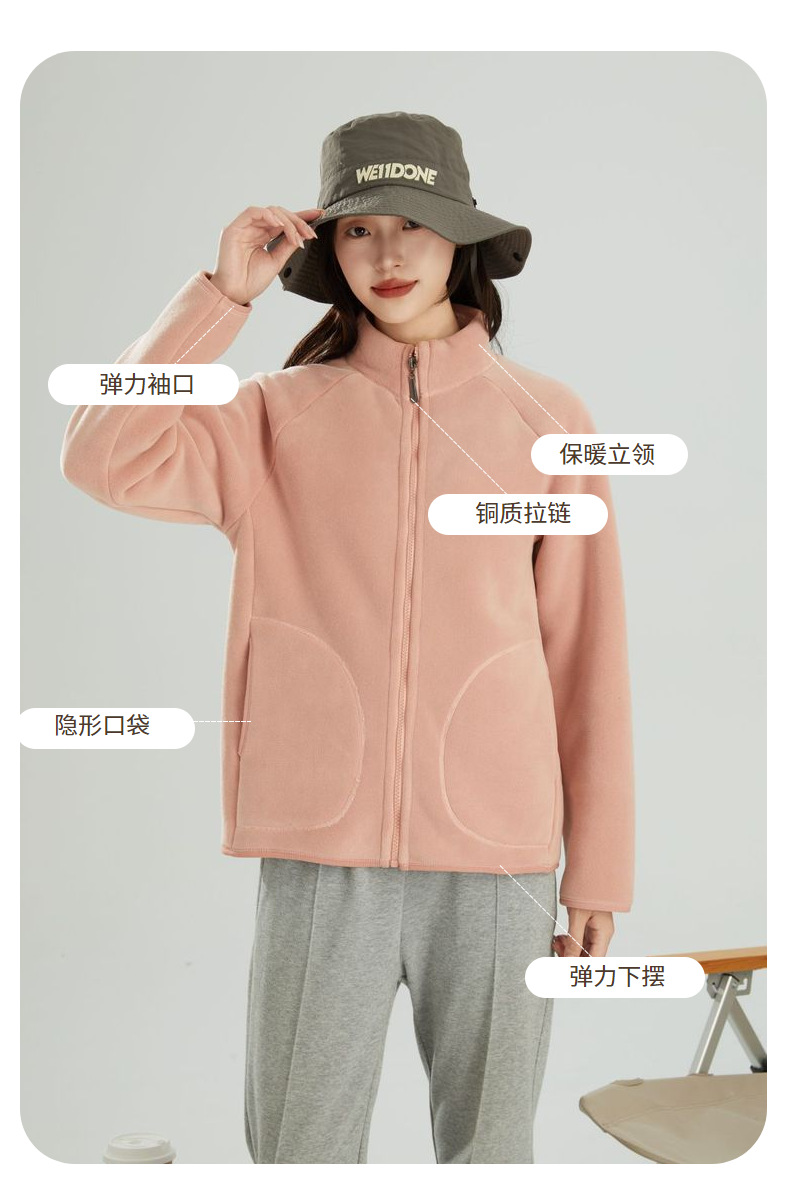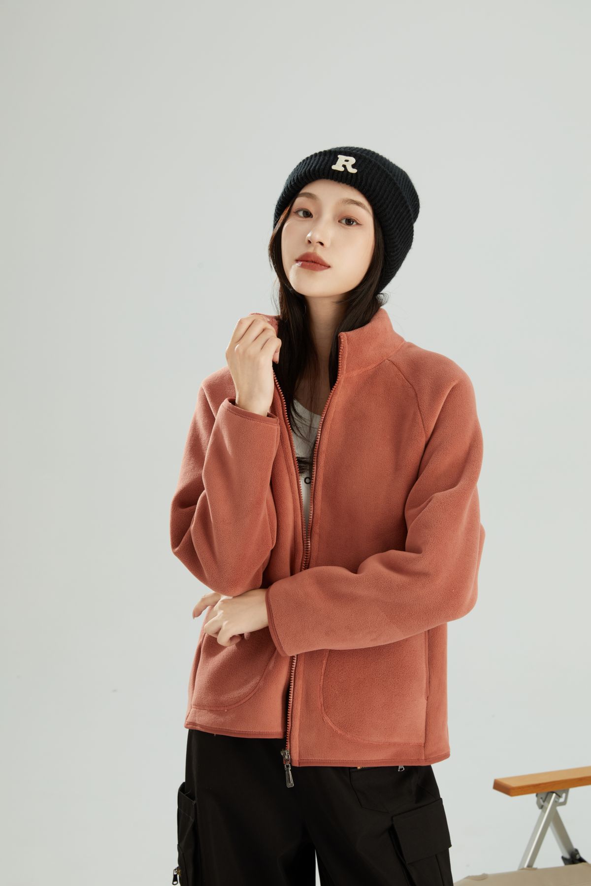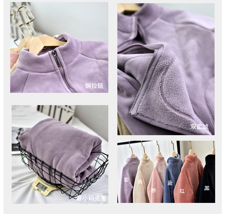 【双面绒立领外套】摇粒绒女秋冬加绒加厚羊羔绒立领开衫短款外套