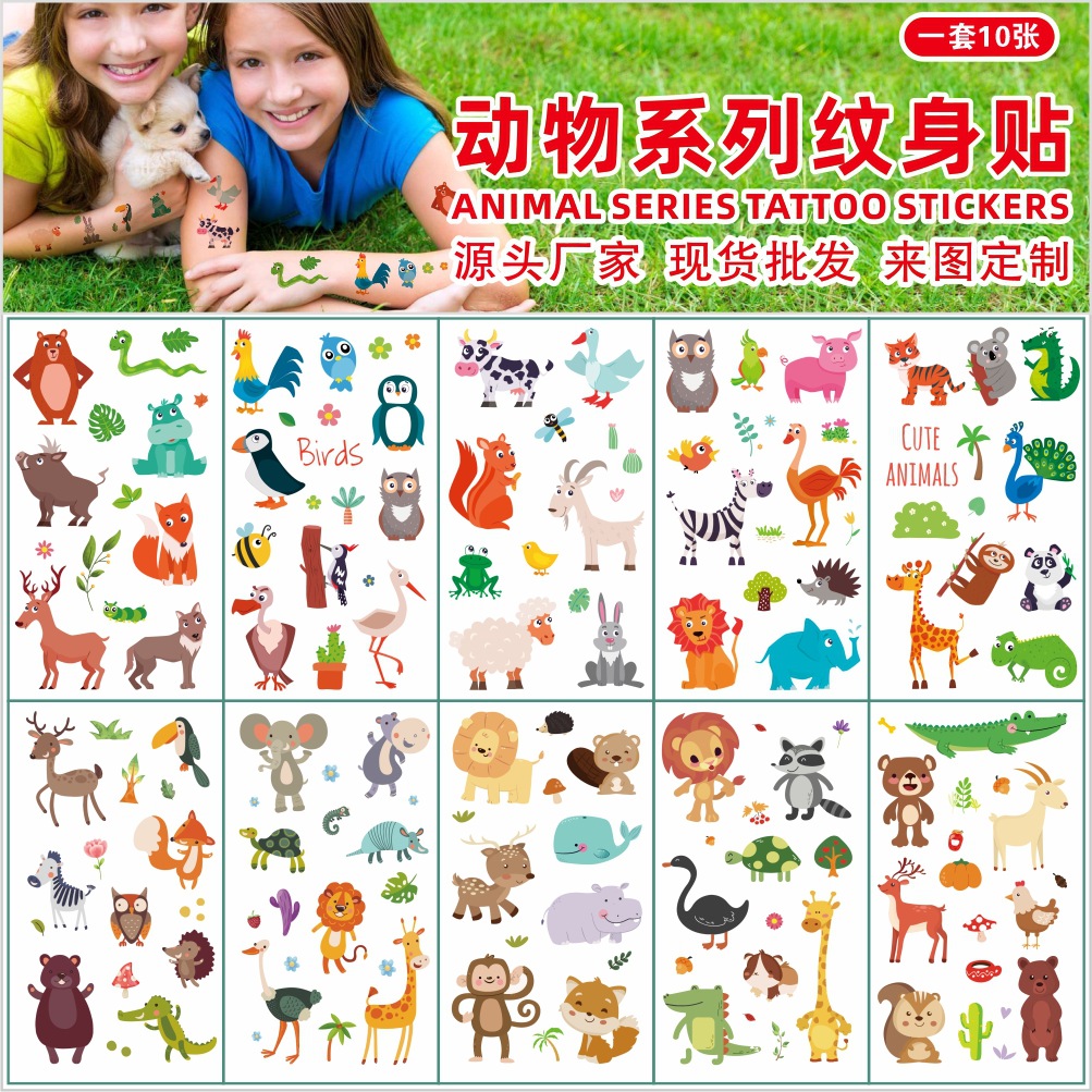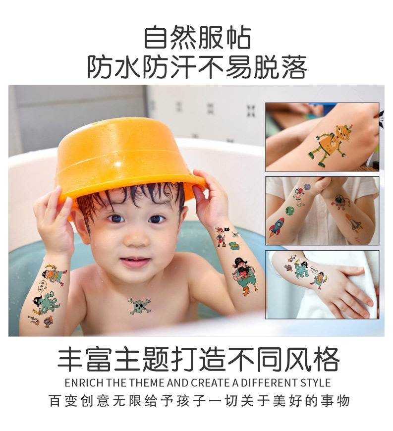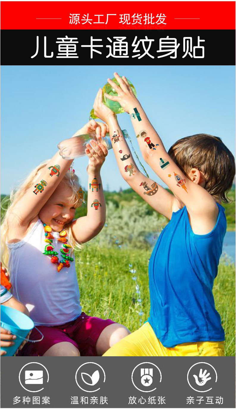 跨境儿童卡通纹身贴可爱独角兽动物恐龙美人鱼男孩女孩手臂文身贴