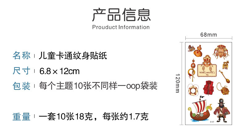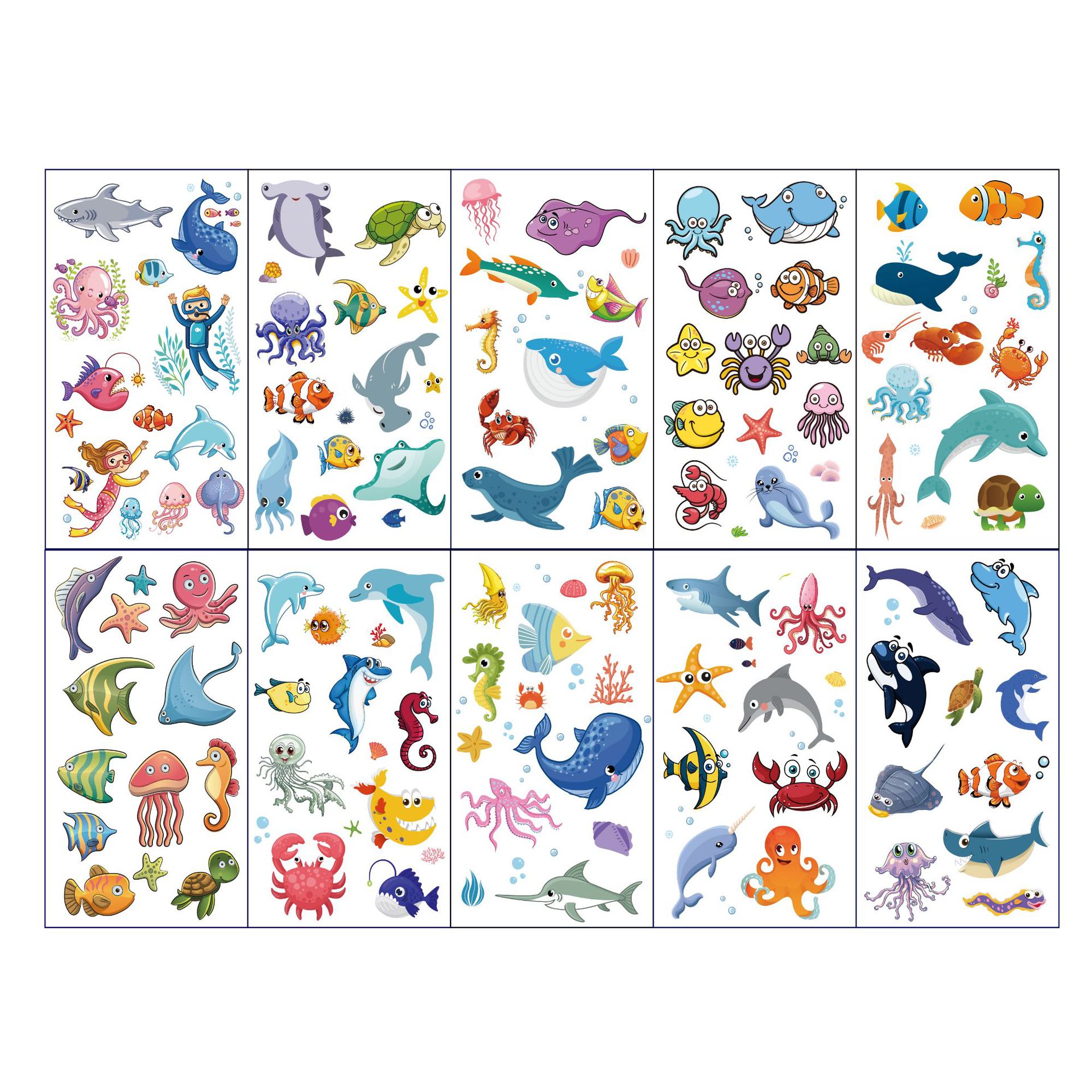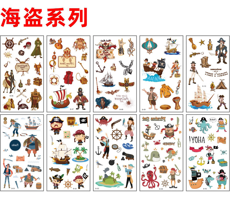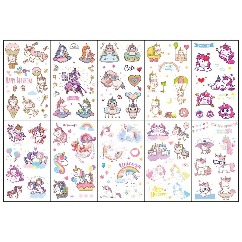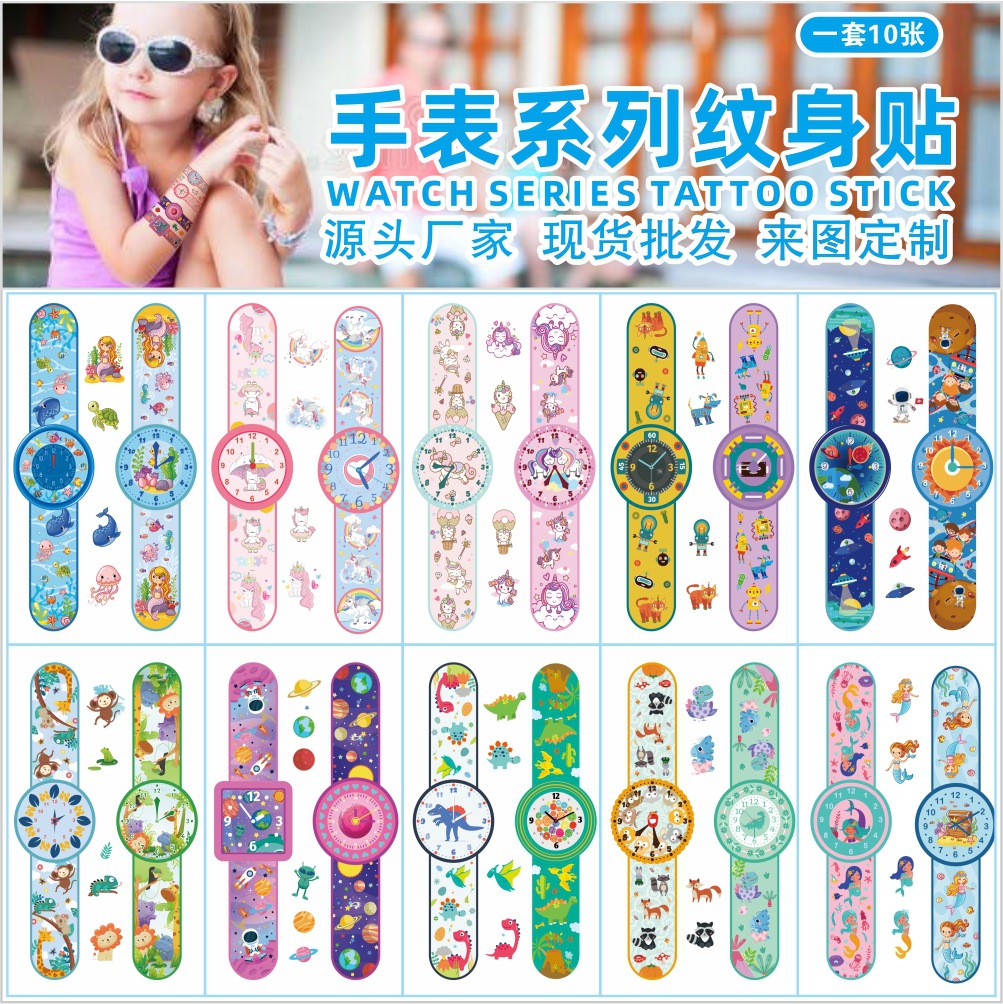 跨境儿童卡通纹身贴可爱独角兽动物恐龙美人鱼男孩女孩手臂文身贴