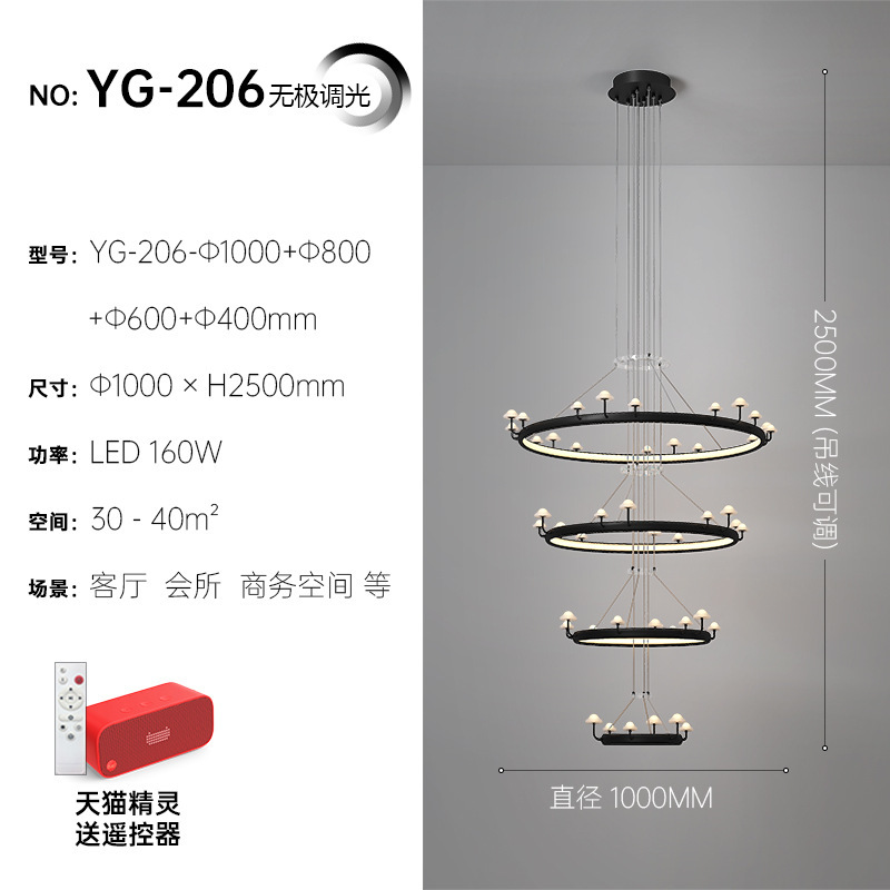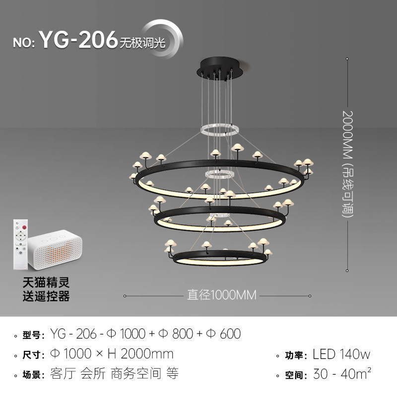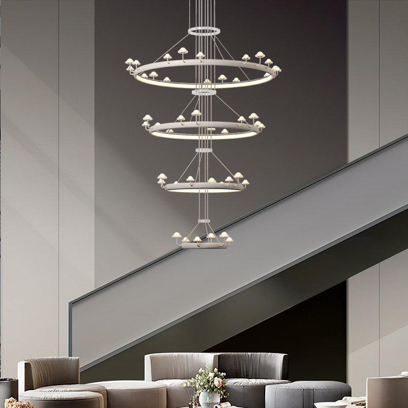 外贸专供2023年复式大厅吊灯极简灯蘑菇灯led客厅吊灯具