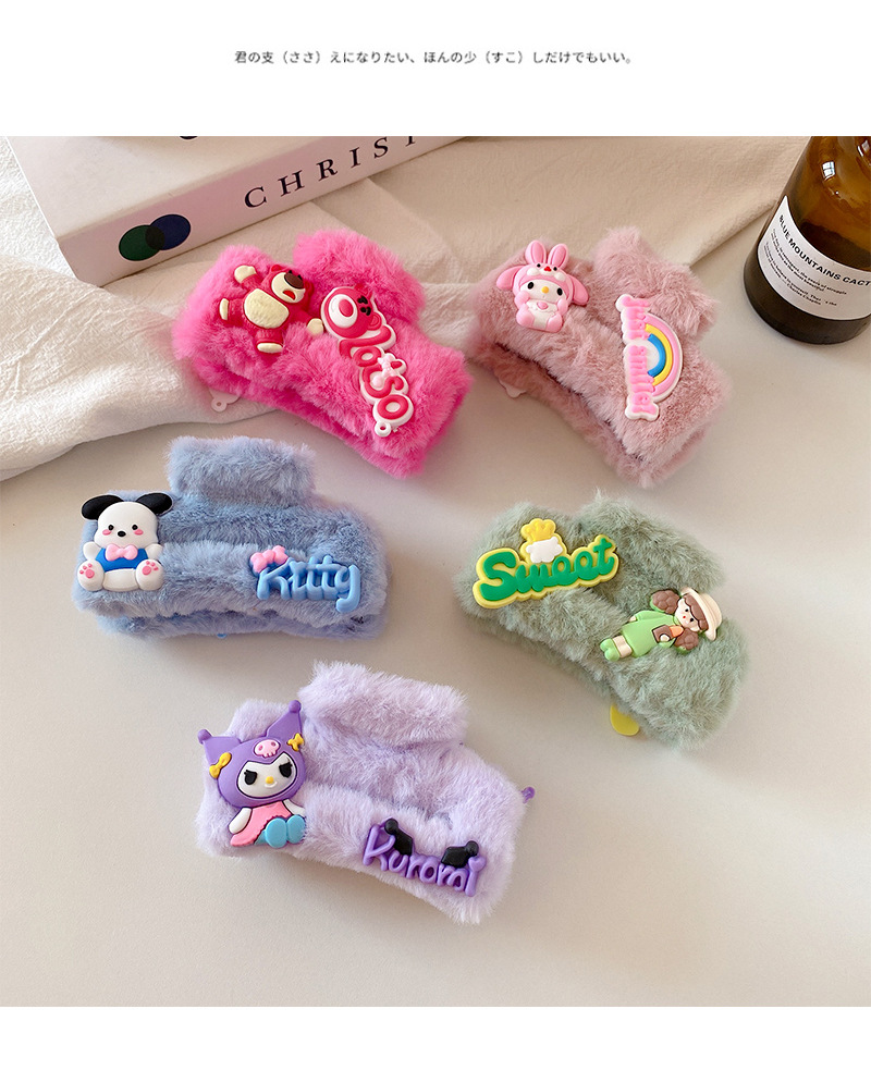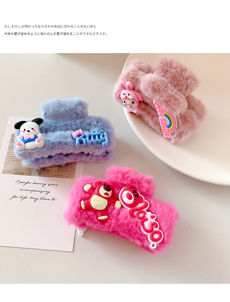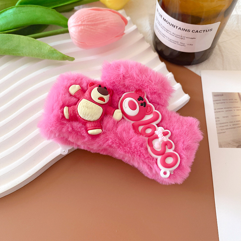 卡通毛绒草莓熊发夹星黛路方形抓夹大号后脑勺鲨鱼夹盘发发卡头饰