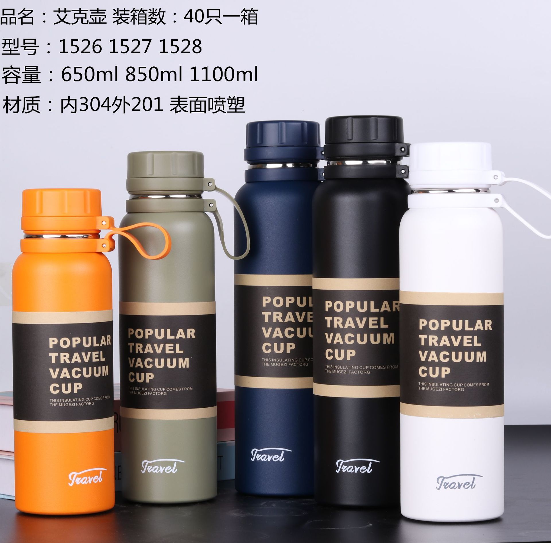 850ml大容量304喷塑保温杯创意运动户外艾克不锈钢保温水壶带茶网