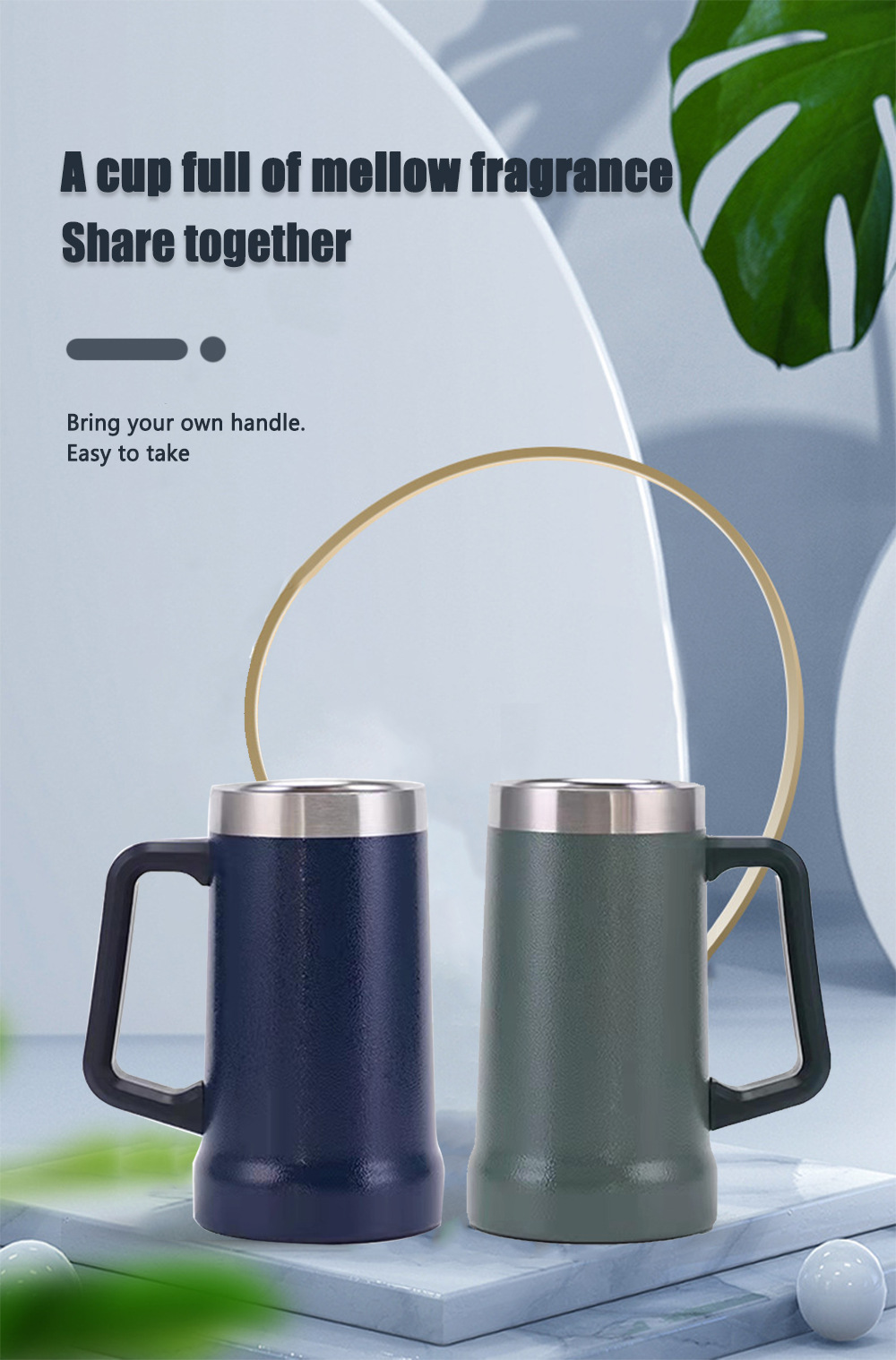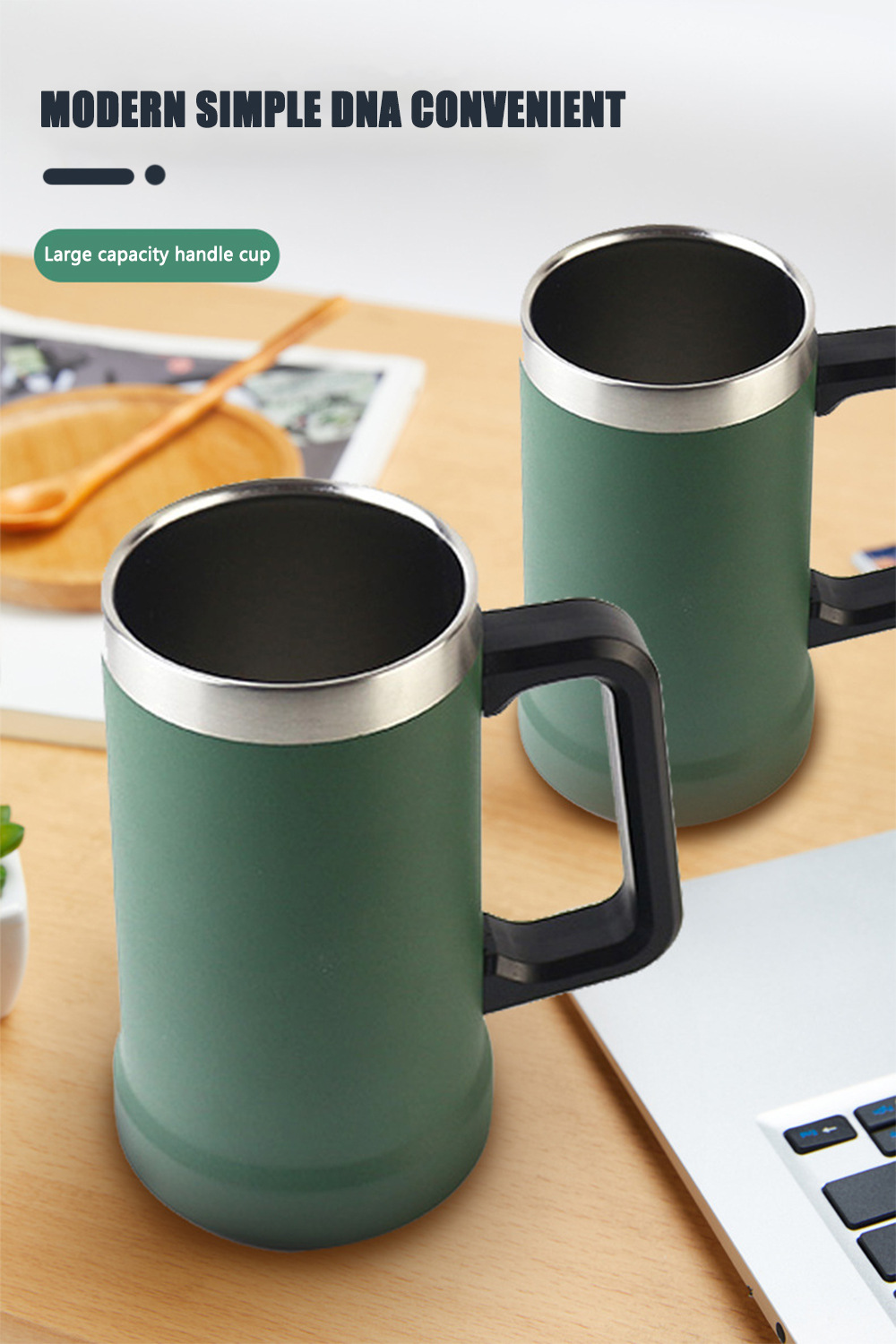 亚马逊热销巴西啤酒手柄马克杯不锈钢真空冷水杯大容量冰霸杯