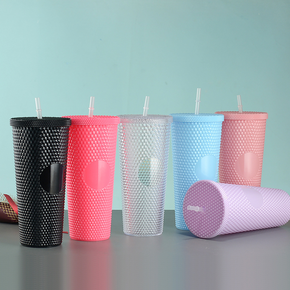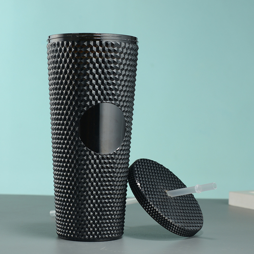 东南亚热卖新款榴莲杯两件套跨境大容量1000毫升吸管杯创意塑料杯