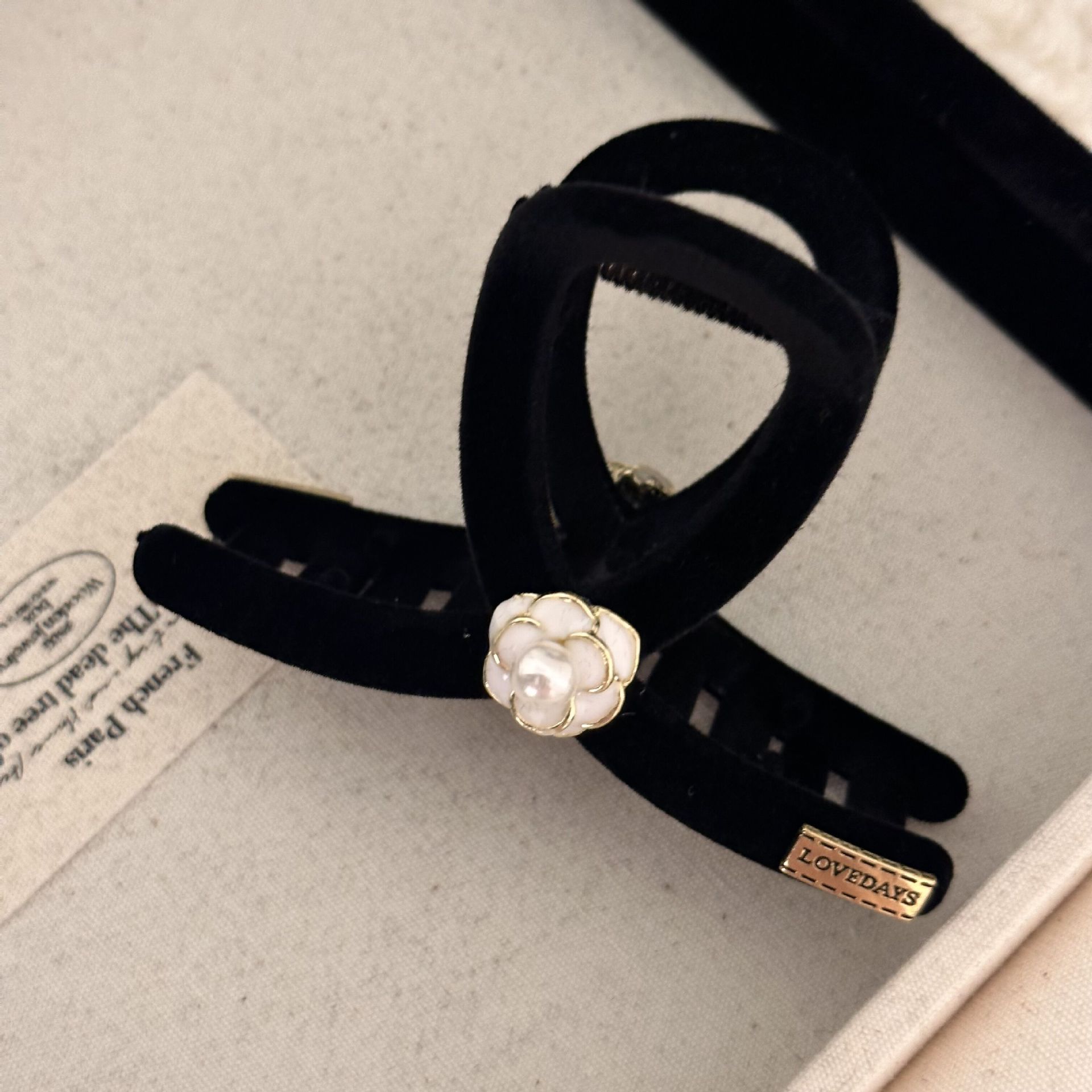 山茶花抓夹~ 黑色植绒复古法式秋冬小香风鲨鱼夹2023年新款发饰女