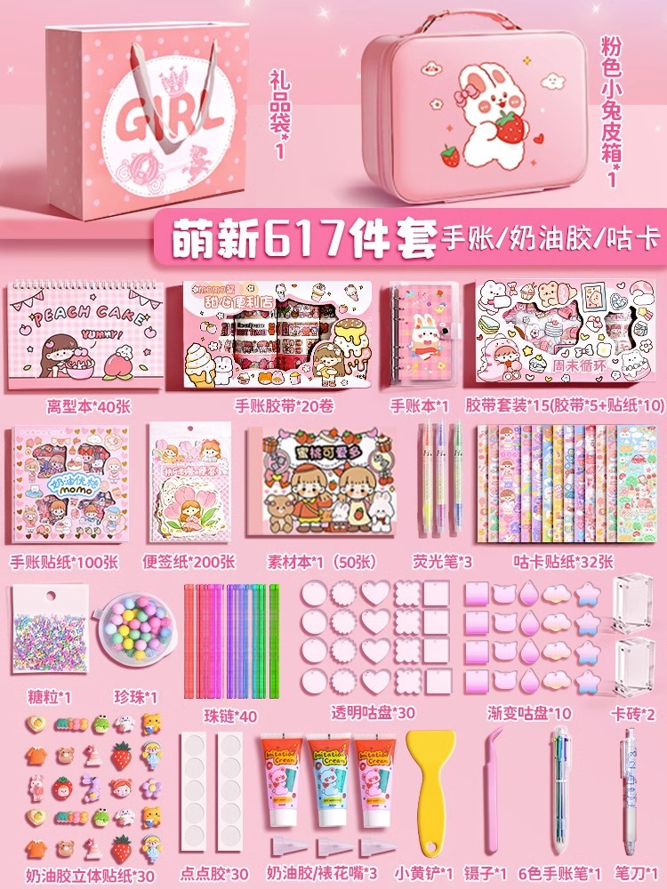 手账奶油胶贴纸套装咕卡胶带笔全套diy材料收纳儿童女孩文具礼物