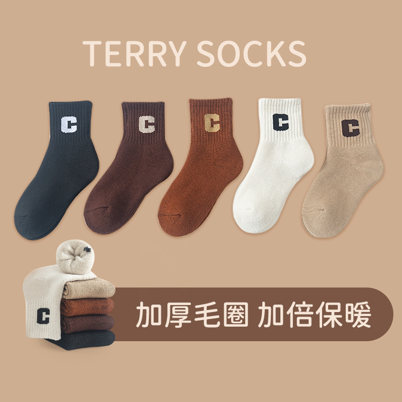 秋冬新款防寒保暖加绒加厚儿童袜子男女童中大童中筒毛巾袜毛圈袜