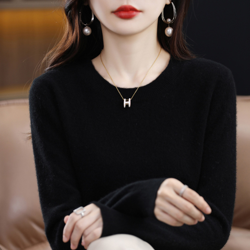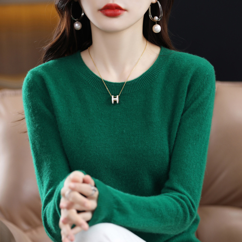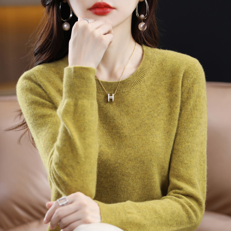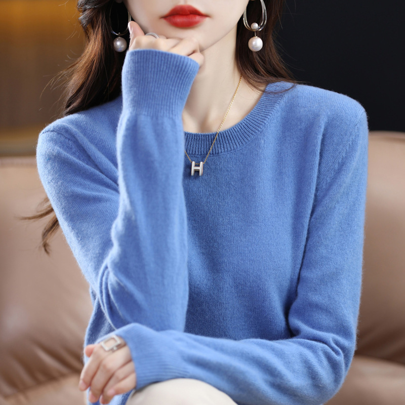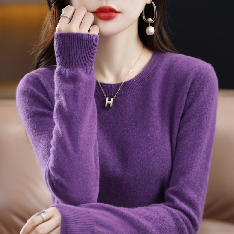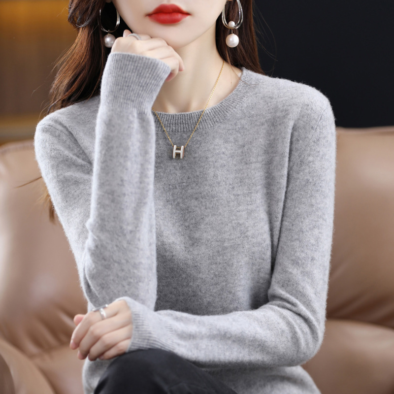 圆领针织衫早秋毛衣保暖全羊毛纯色内搭羊毛衫保暖套头宽松打底衫