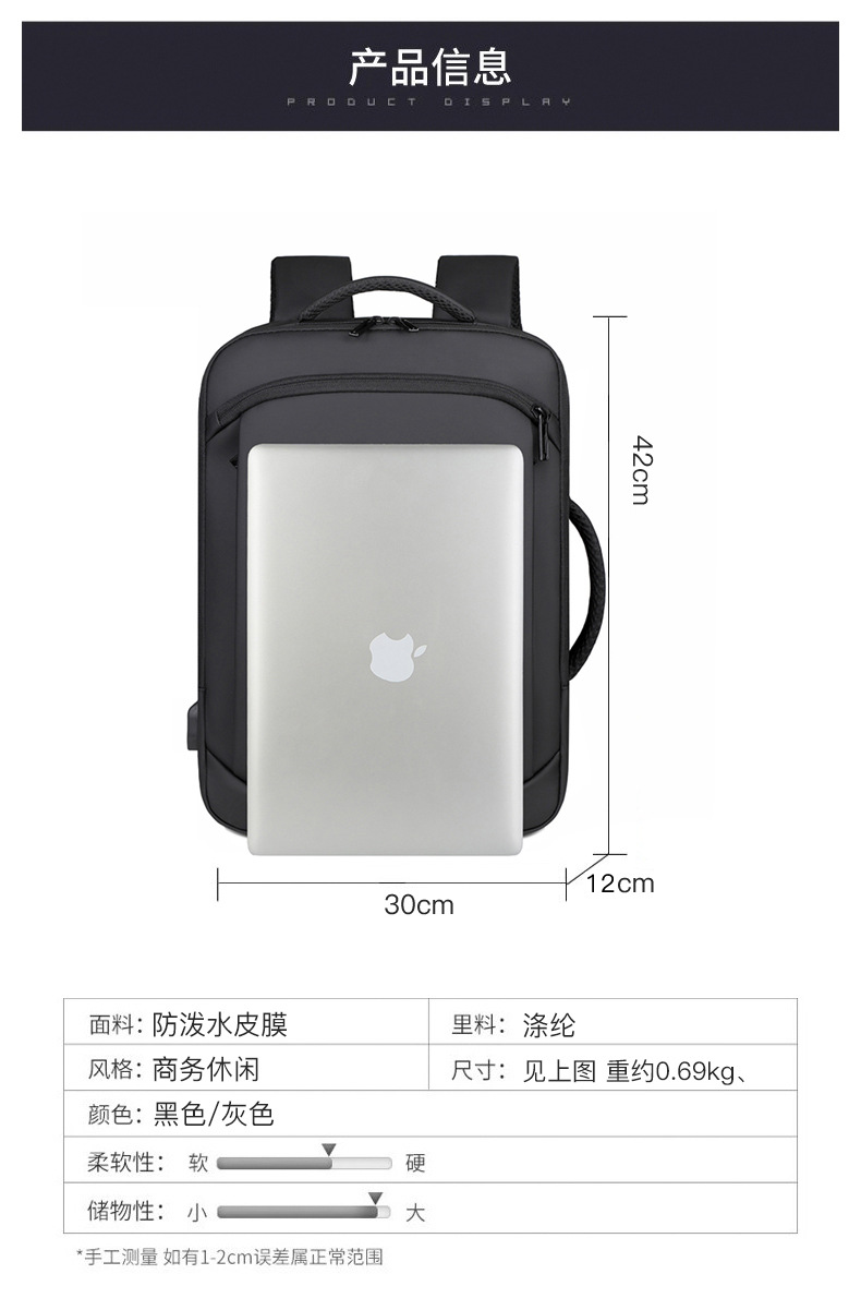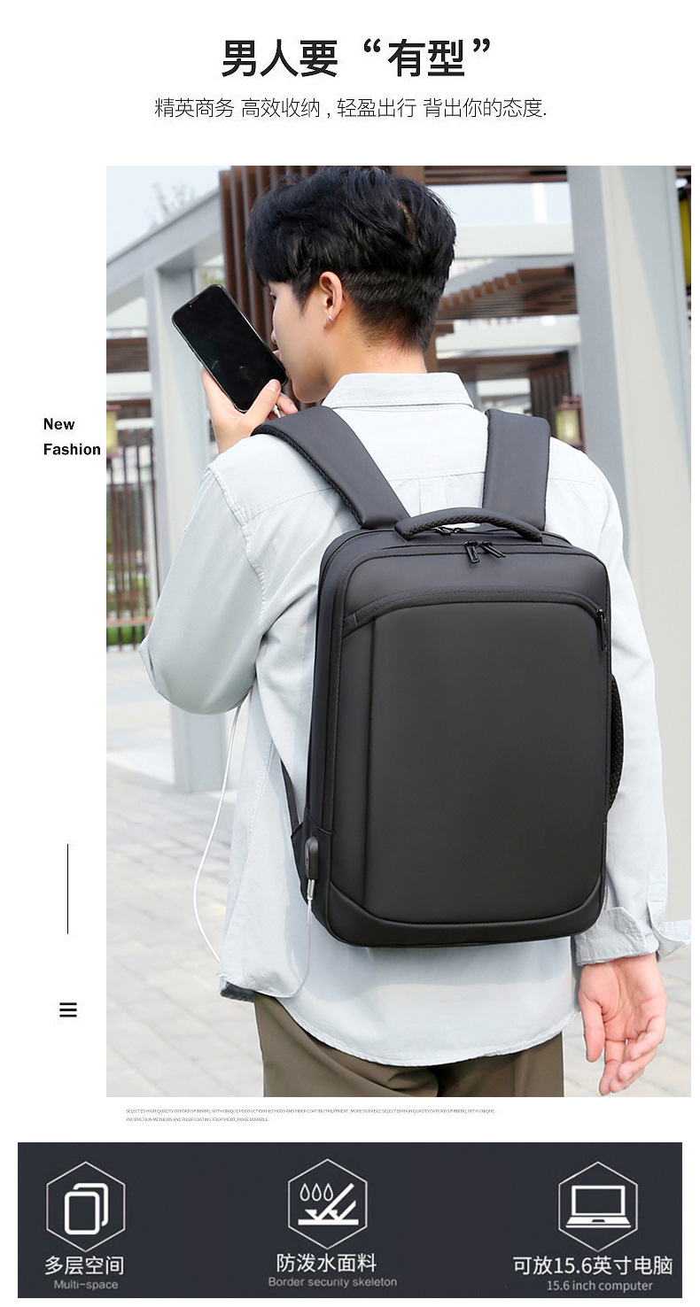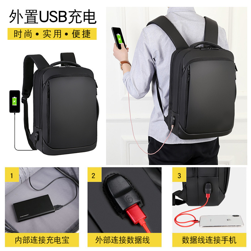 2023双肩包USB电脑商务包 男女通勤休闲旅行背包