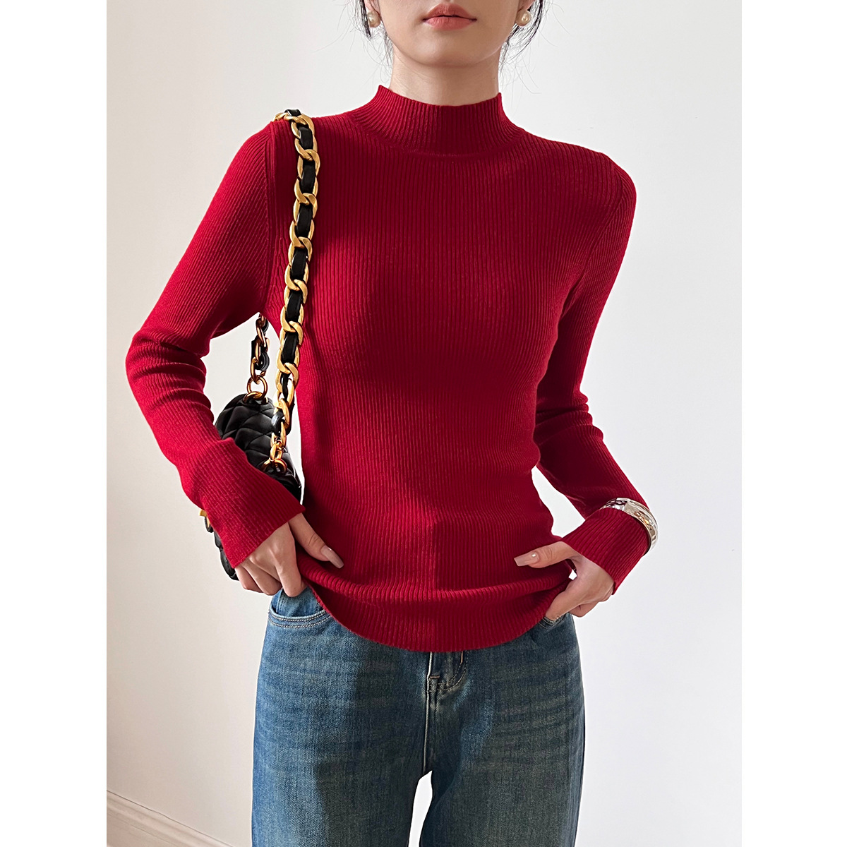 【软糯保暖打底衫】16针60支羊毛混纺纱高弹力秋冬百搭BI备针织衫