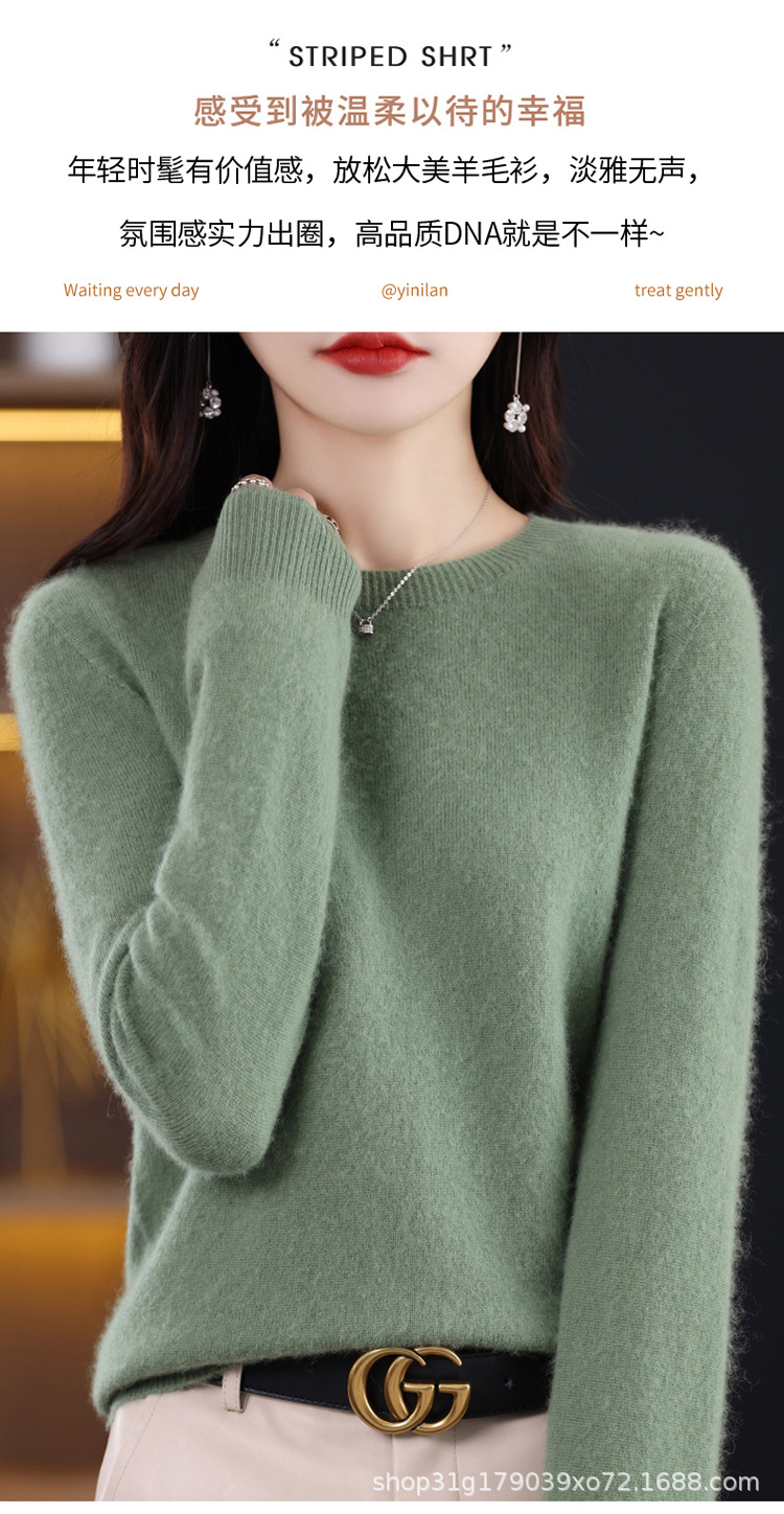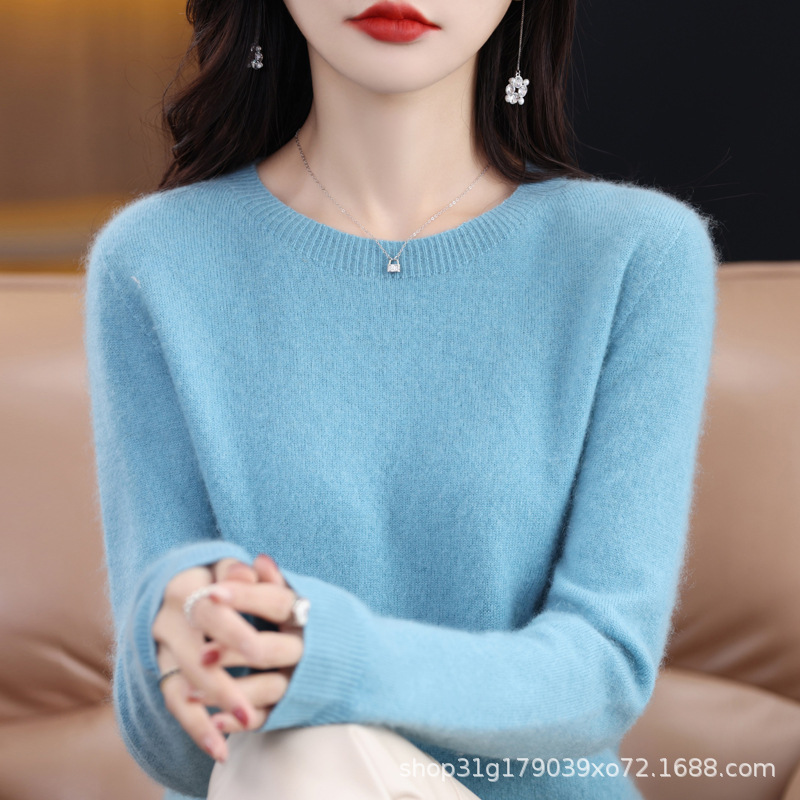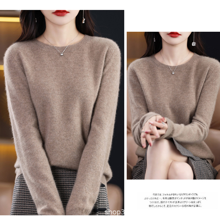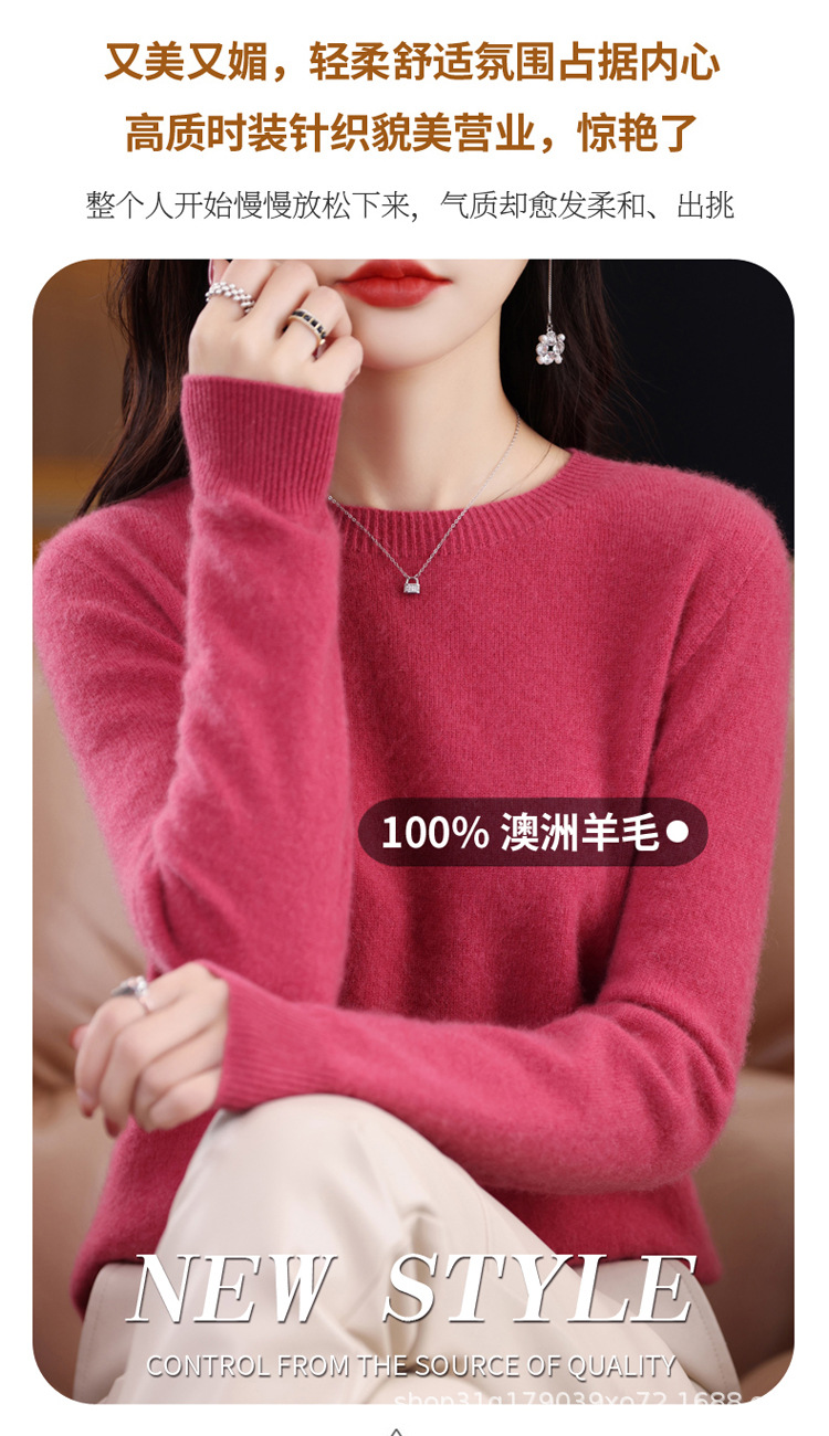 羊毛衫女圆领秋冬新款长袖无缝针织一线成衣羊毛毛衣内搭打底衫潮
