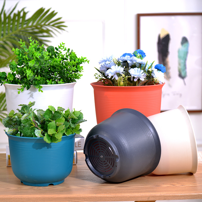 塑料花盆仿真花装饰仿陶瓷桌面种植多肉盆圆形懒人家庭阳台
