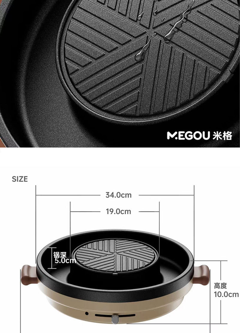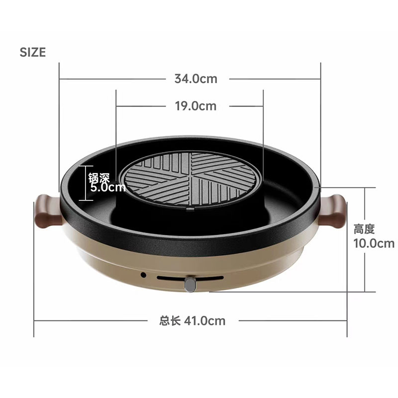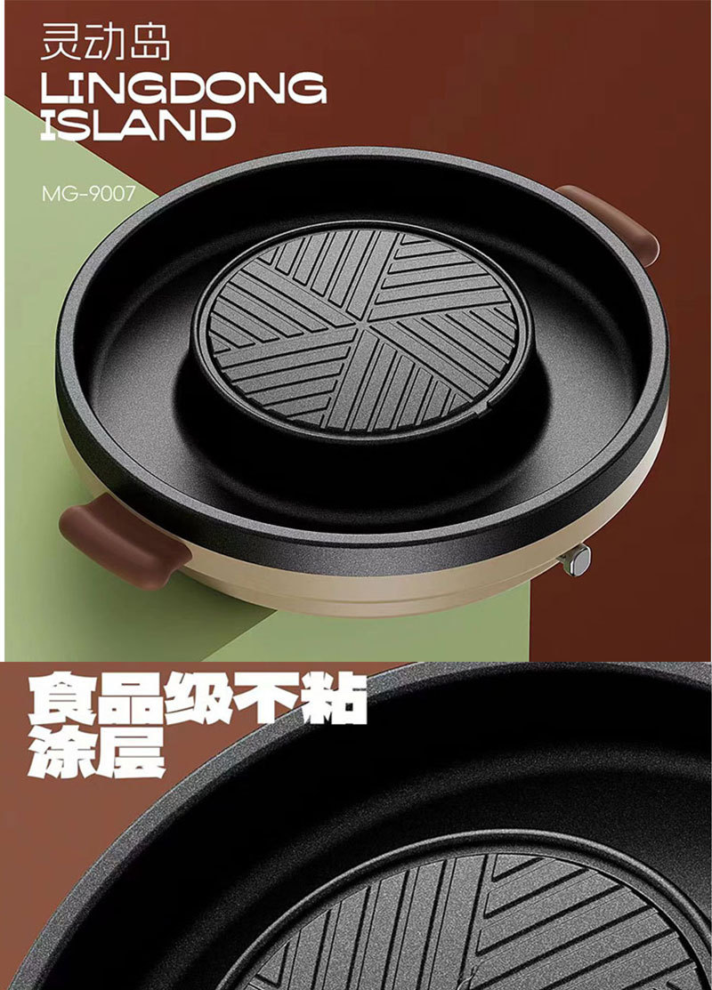 外贸跨境韩式涮烤锅多功能电热锅圆形电热锅家用烤涮煎煮电火锅