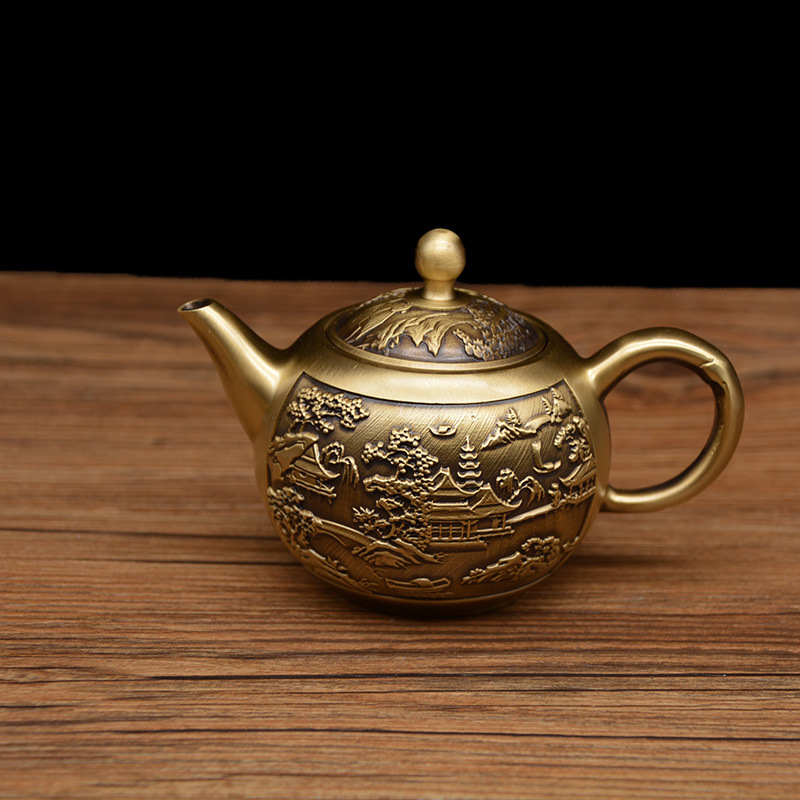 宏达 批发拉丝 铜壶 山水壶 铜茶壶 家居创意铜器摆件