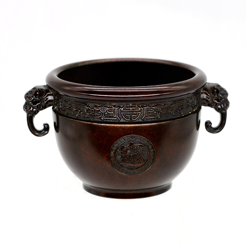 博喜全铜宝象鼻缸 家居桌面摆件办公室装饰品