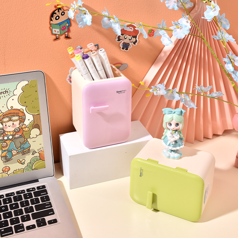 淞泰批发创意可爱马卡龙冰箱笔筒儿童学生书桌办公文具收纳盒摆件