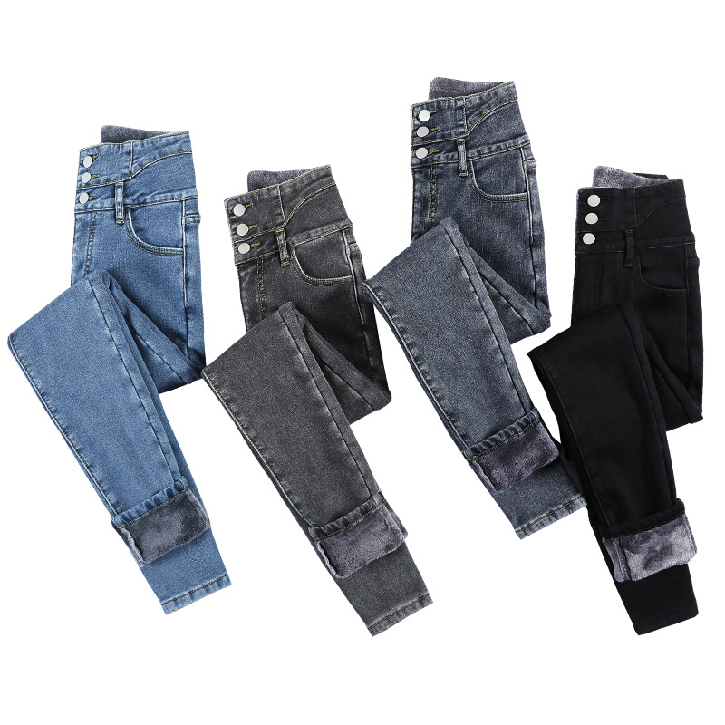 加绒牛仔裤女宽松高腰显瘦2021秋冬新款外穿百搭直筒弹力小脚铅笔