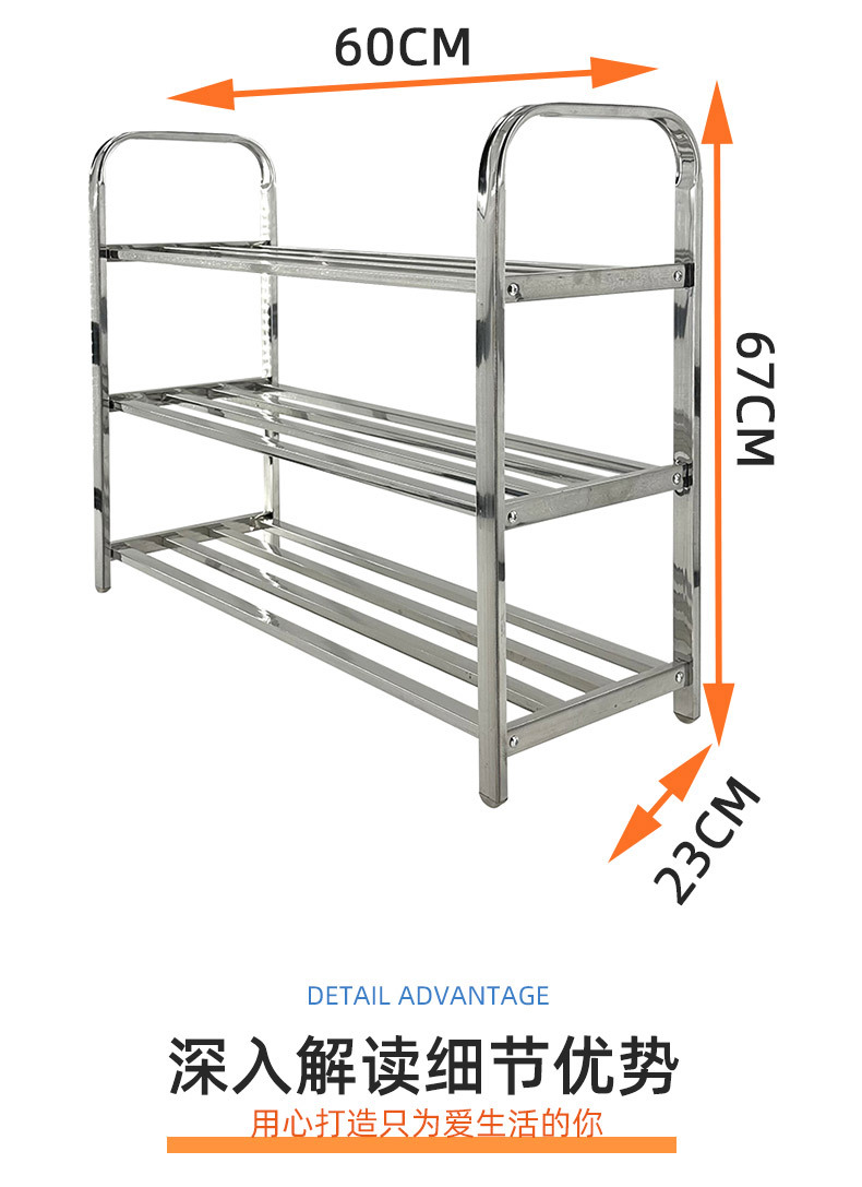 鞋架收纳不锈钢方管家用宿舍门口走廊 置物架 组装多层鞋架