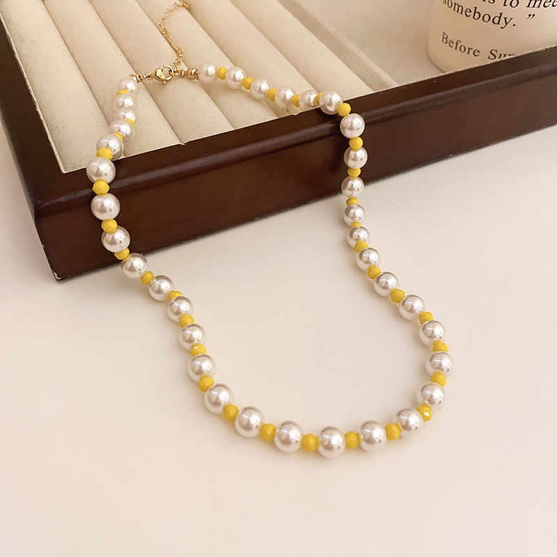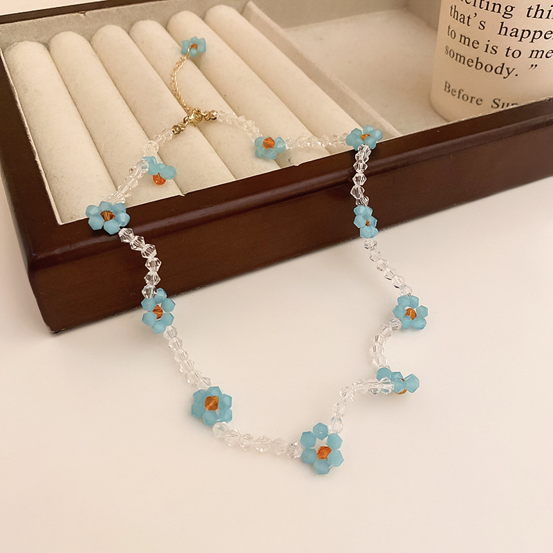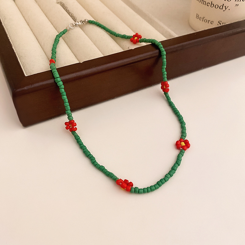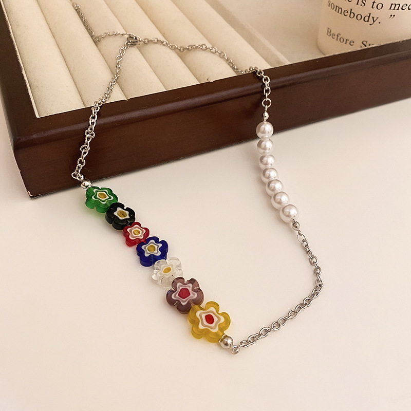 彩色花朵珍珠爱心串珠项链甜美小清新锁骨链2023年新款项饰女批发