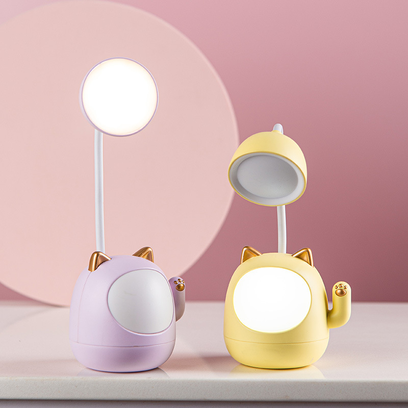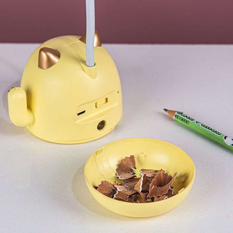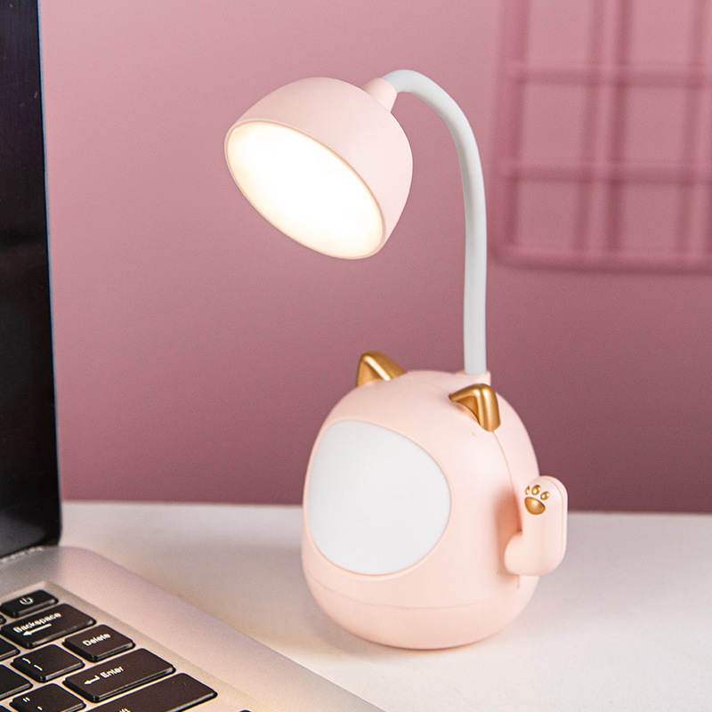 新品USB充电台灯招财猫护眼LED台灯带削笔刀带夜灯桌面便携小台灯
