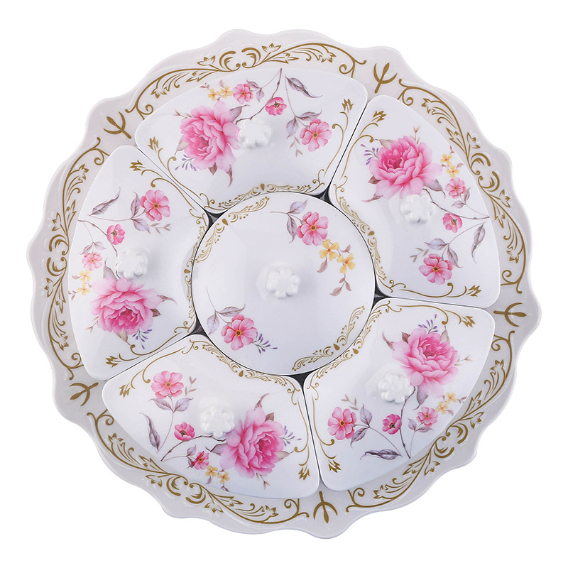 分格带盖子零食收纳盒干果盘糖果盒家用客厅旋转瓜子盘点心水果盘