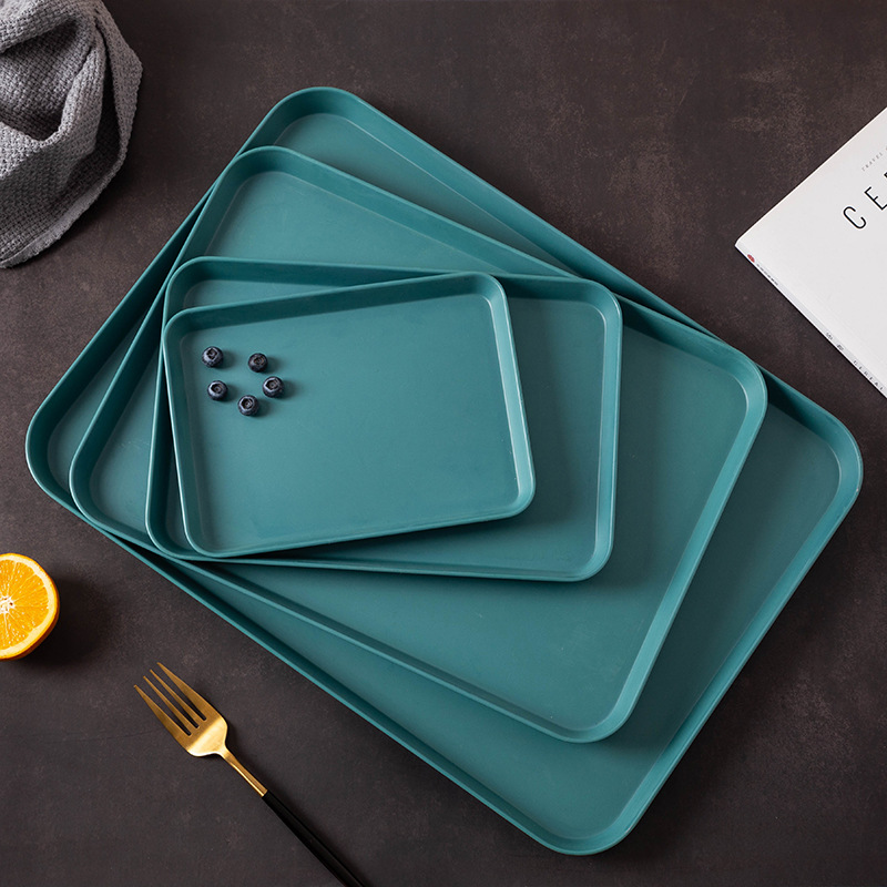 北欧ins塑料盘子端菜盘子家用长方形放水杯茶杯盘水果甜品盘茶盘