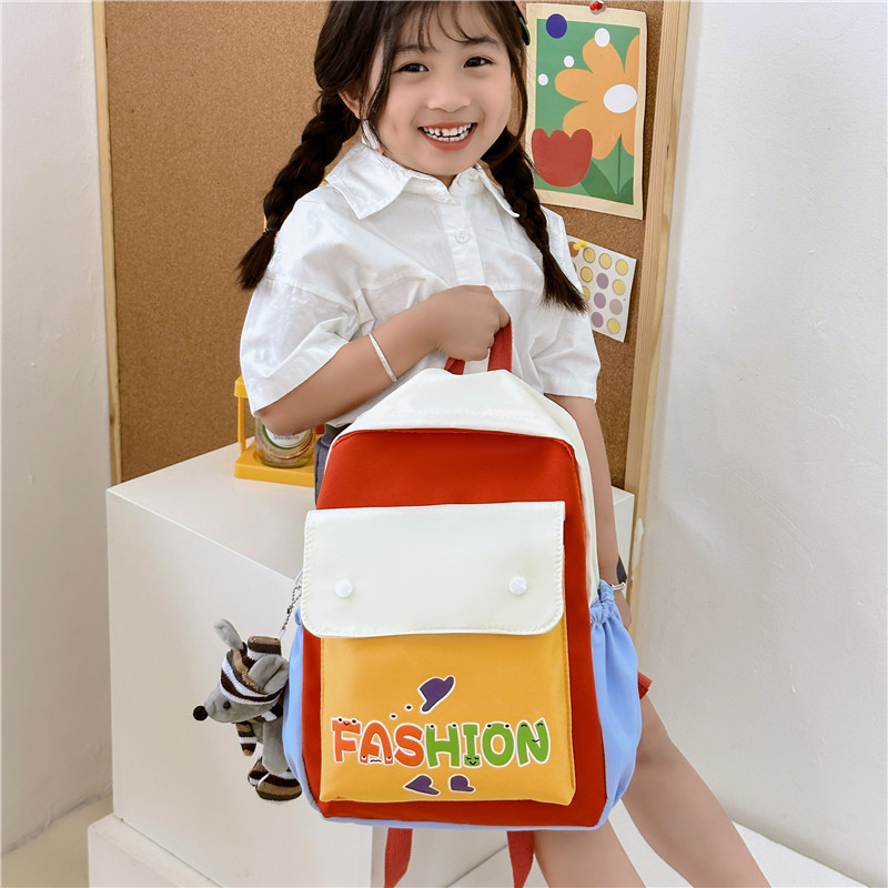 2023幼儿园新款撞色小背包可爱男女童字母帆布双肩包宝宝书包