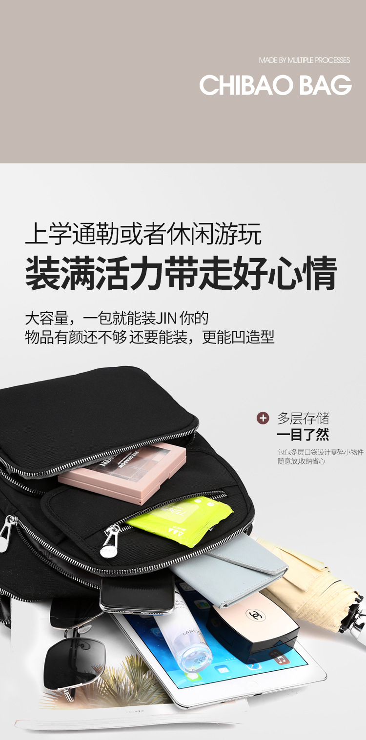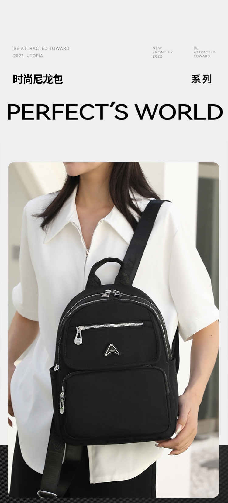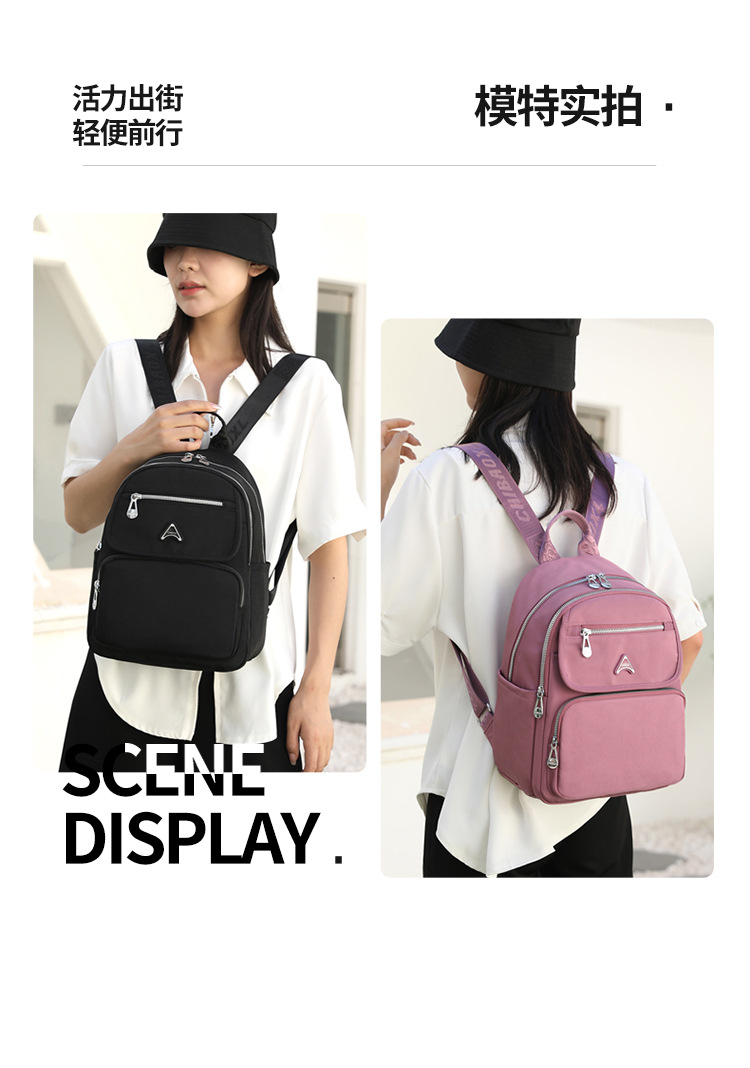 双肩包女2023新款ins纯色翻盖小背包时尚多夹层双肩包