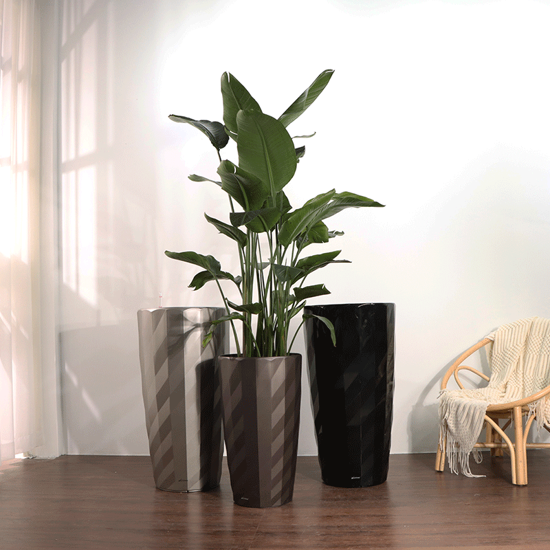 厂家直供自吸水花盆 圆形落地烤漆北欧菱形面懒人自吸水花盆 批发