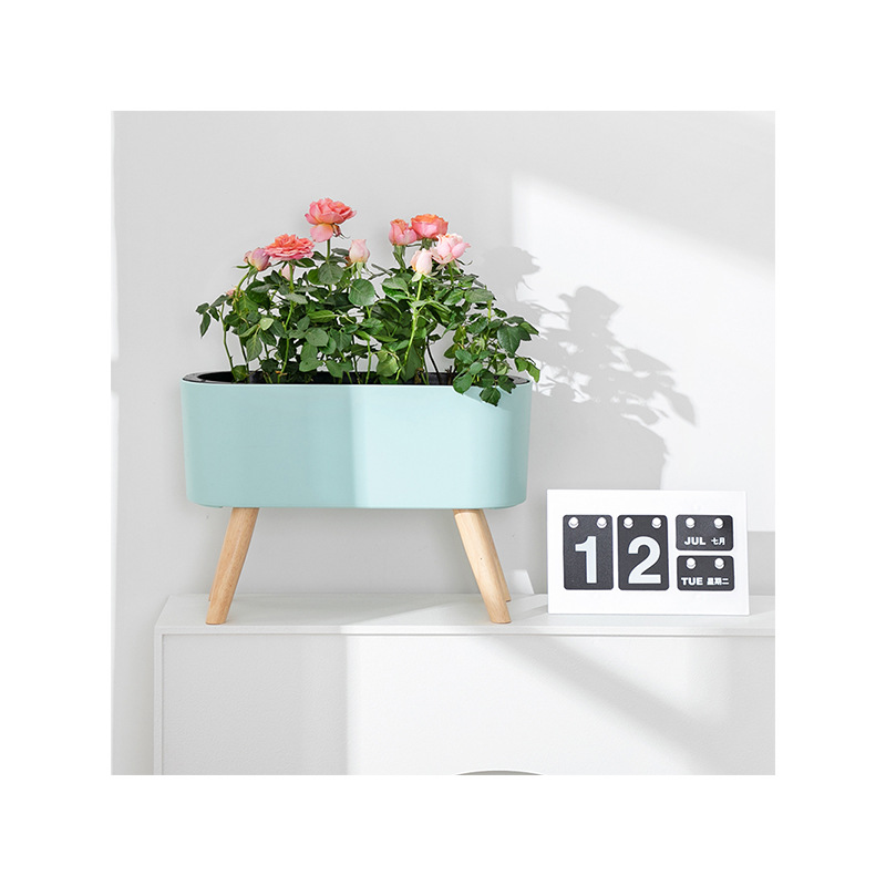 欧款懒人长形花盆 简约木脚客厅阳台落地自动吸水可壁挂花盆