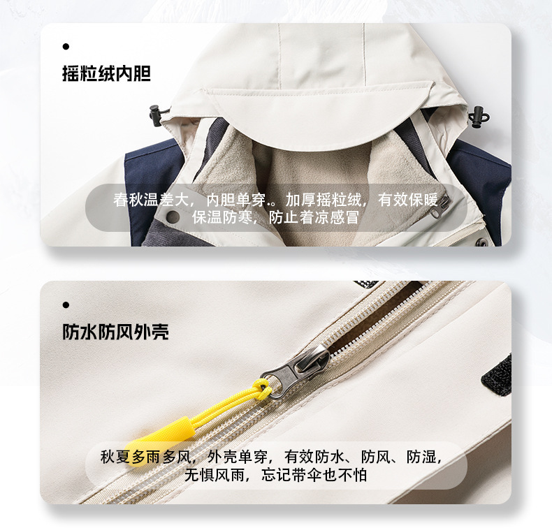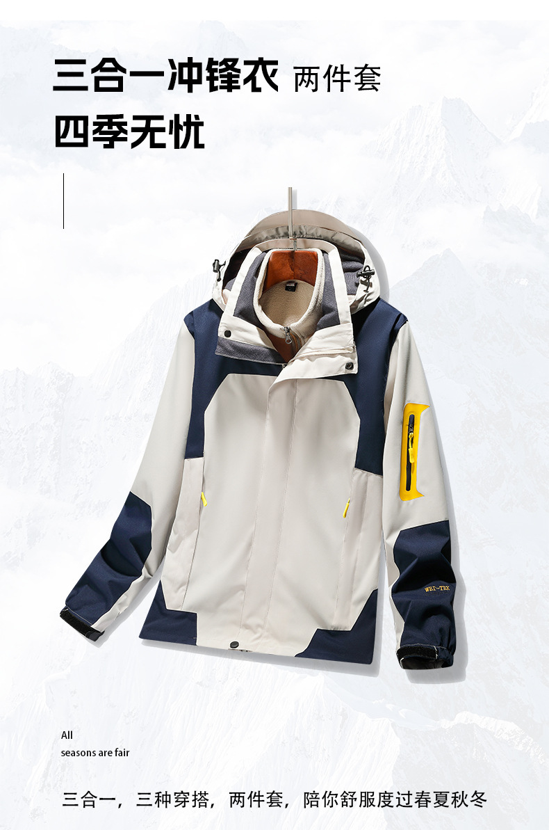 冲锋衣厂家批发秋冬户外男女外套三合一防风防水可拆卸加绒登山服