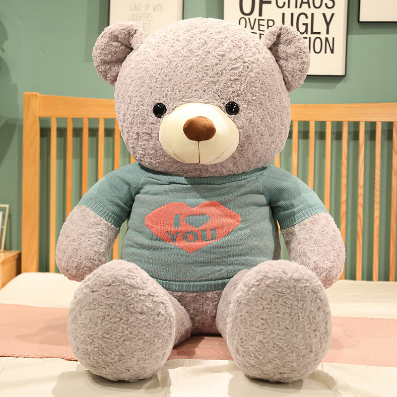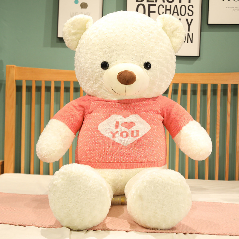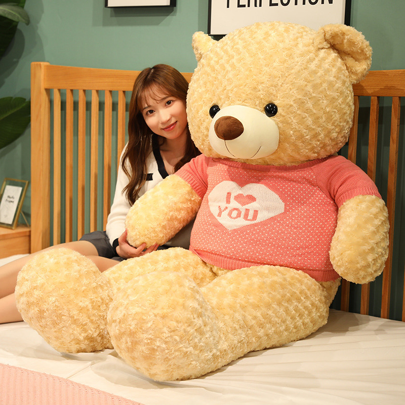 大号LOVE抱抱熊公仔女孩泰迪熊T恤熊毛绒玩具三八节娃娃生日礼物